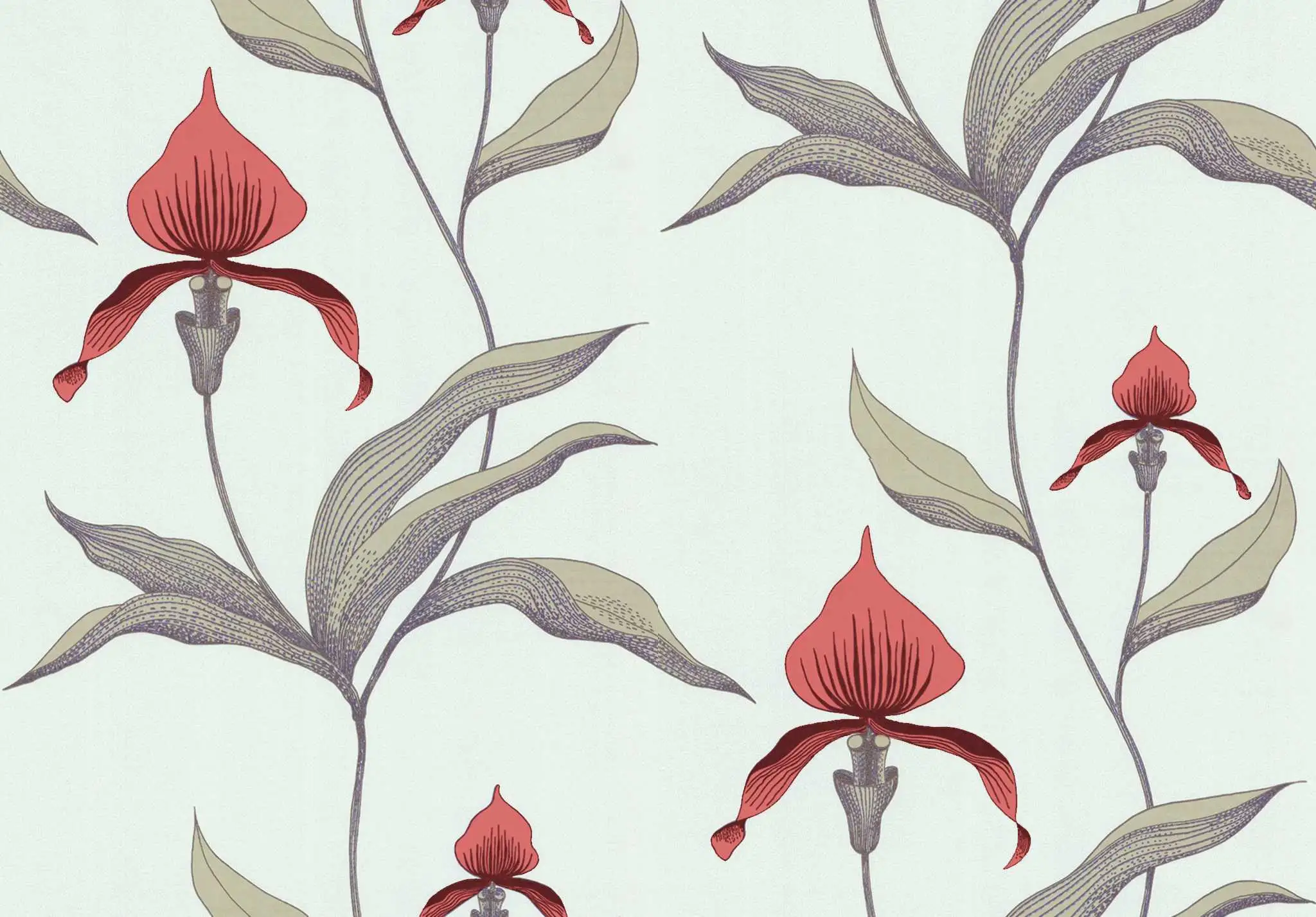 Die Tapete "Orchid" präsentiert ein beeindruckendes Orchideenmuster. Die rote Orchidee, ein Symbol für eidenschaft, Liebe und Hingabe, erstreckt sich großflächig auf der Tapete. Die auffälligen Blüten ruhen dabei auf länglichen Blättern. Dieses einladende Design eignet sich hervorragend für das Wohnzimmer, aber auch für ein verspielt eingerichtetes Schlafzimmer, wo es einen charmanten Lebensraum schafft.