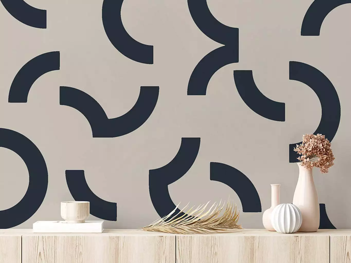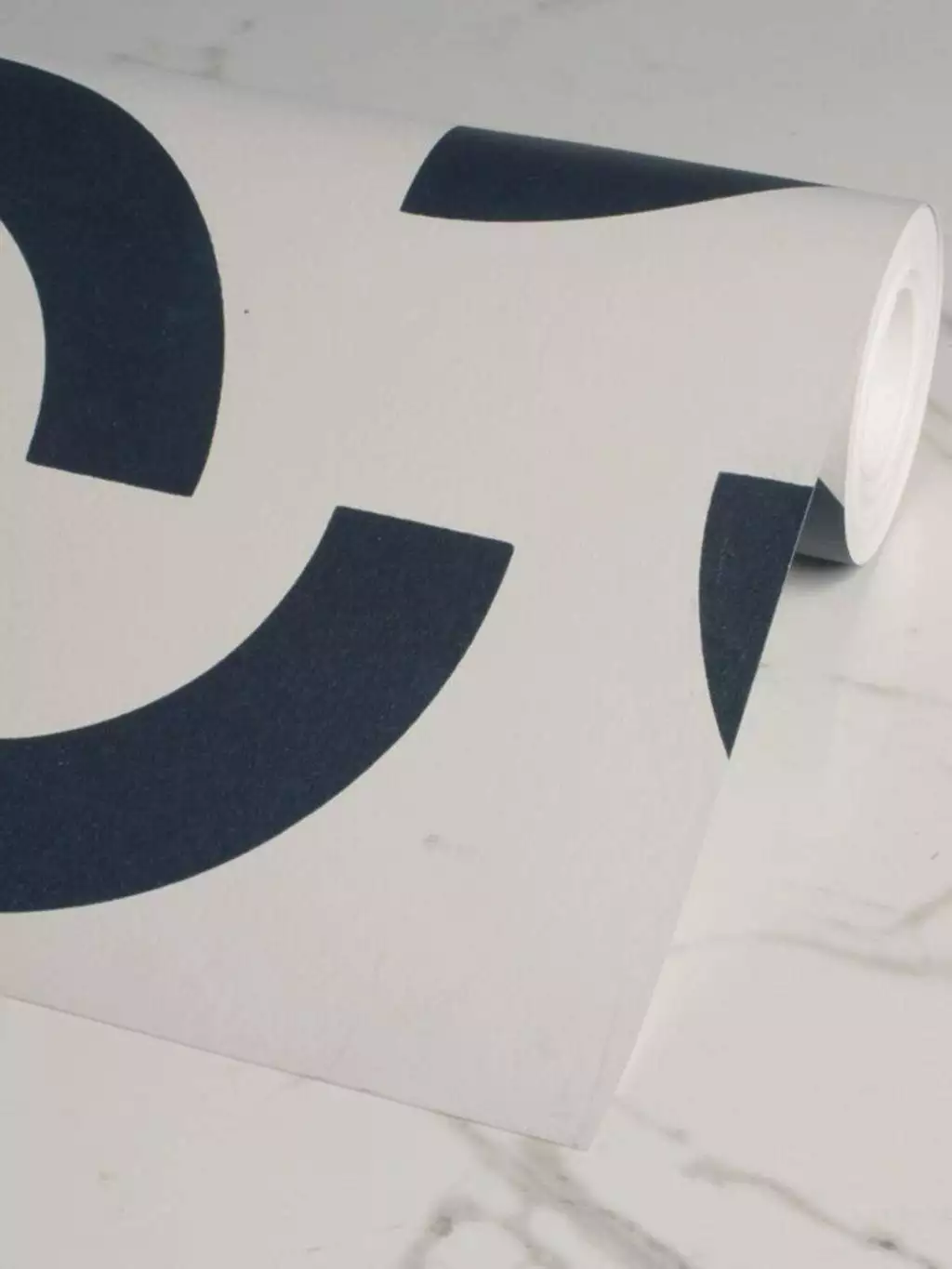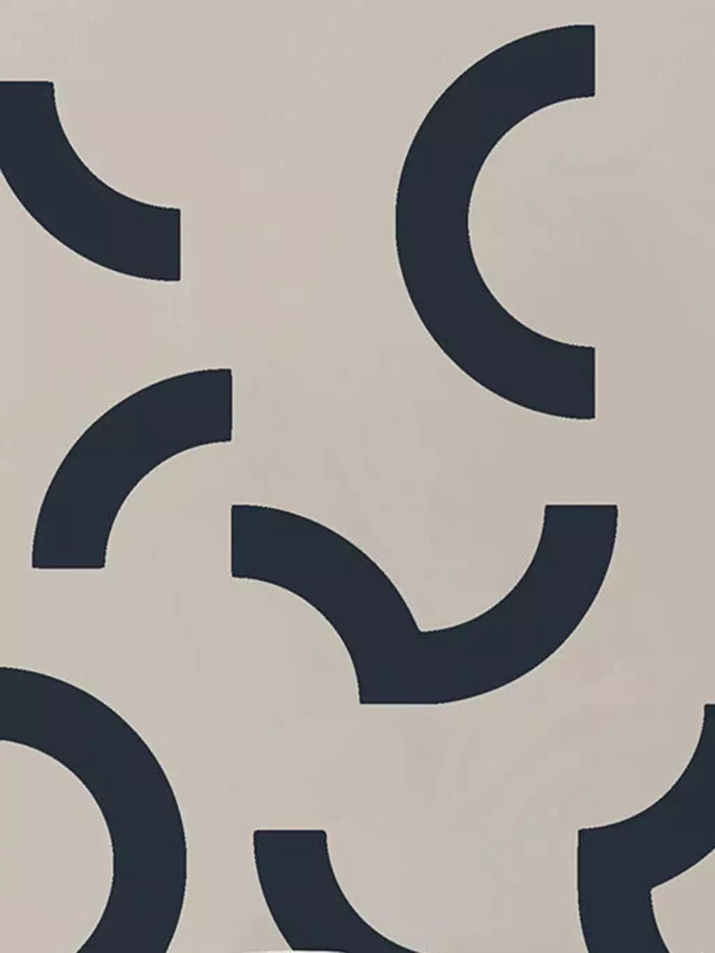 Die Tapete Overscale Contour, Auk von Custhom bringt grafische Klarheit und rhythmische Strukturen in den Raum. Inspiriert von den Linienführungen auf Sportfeldern, entsteht ein modernes Muster aus geometrischen Halbkreisen auf einem tiefdunklen Hintergrund. Gedruckt wird im traditionellen Siebdruckverfahren, per Hand und mit sichtbarem handwerklichem Charakter.