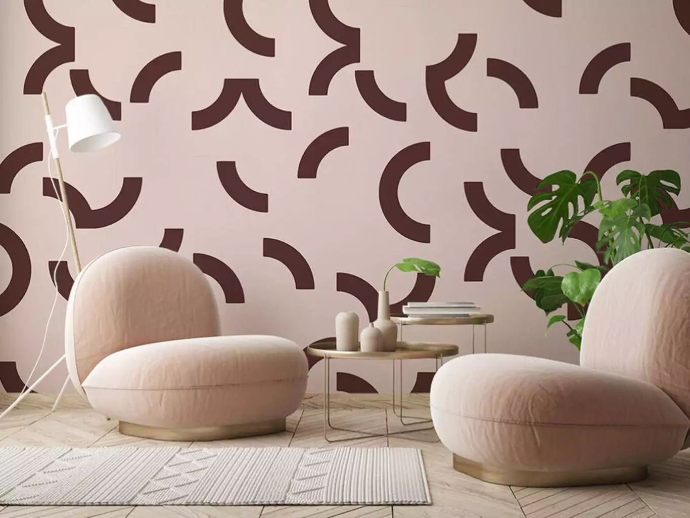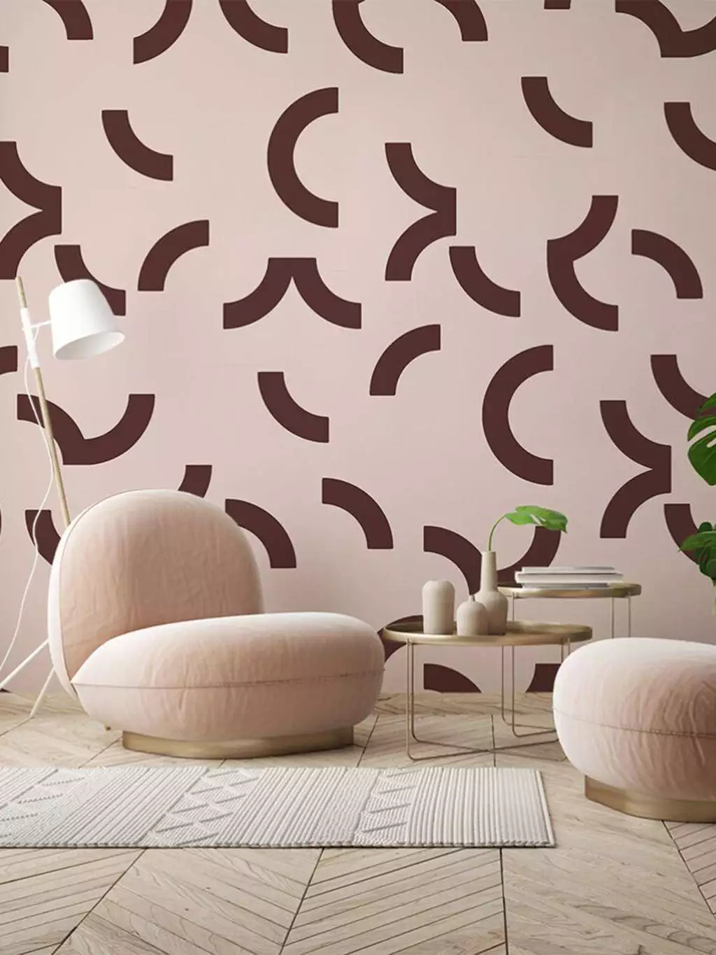 Die Tapete Overscale Contour, Auk von Custhom bringt grafische Klarheit und rhythmische Strukturen in den Raum. Inspiriert von den Linienführungen auf Sportfeldern, entsteht ein modernes Muster aus geometrischen Halbkreisen auf einem tiefdunklen Hintergrund. Gedruckt wird im traditionellen Siebdruckverfahren, per Hand und mit sichtbarem handwerklichem Charakter.