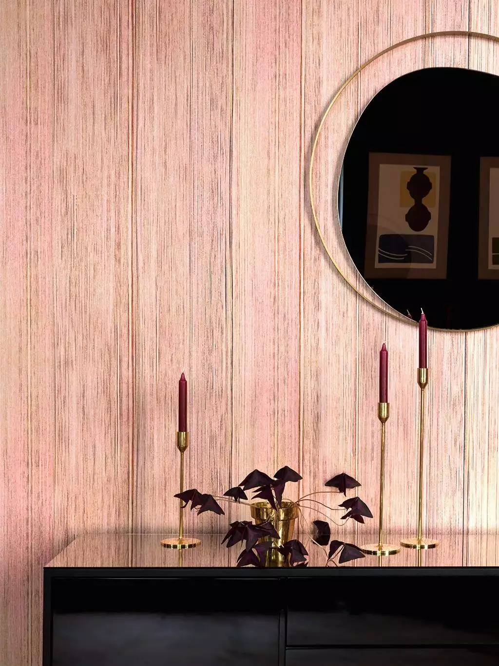 A même la peau - so heißt die Farbgebung der Tapete Palaos, mit der der französische Hersteller Èlitis mit dem Raum sprichwörtlich auf Tuchfühlung geht. Bei der exklusiven Textiltapete bezieht sich der Preis auf einen Laufmeter.