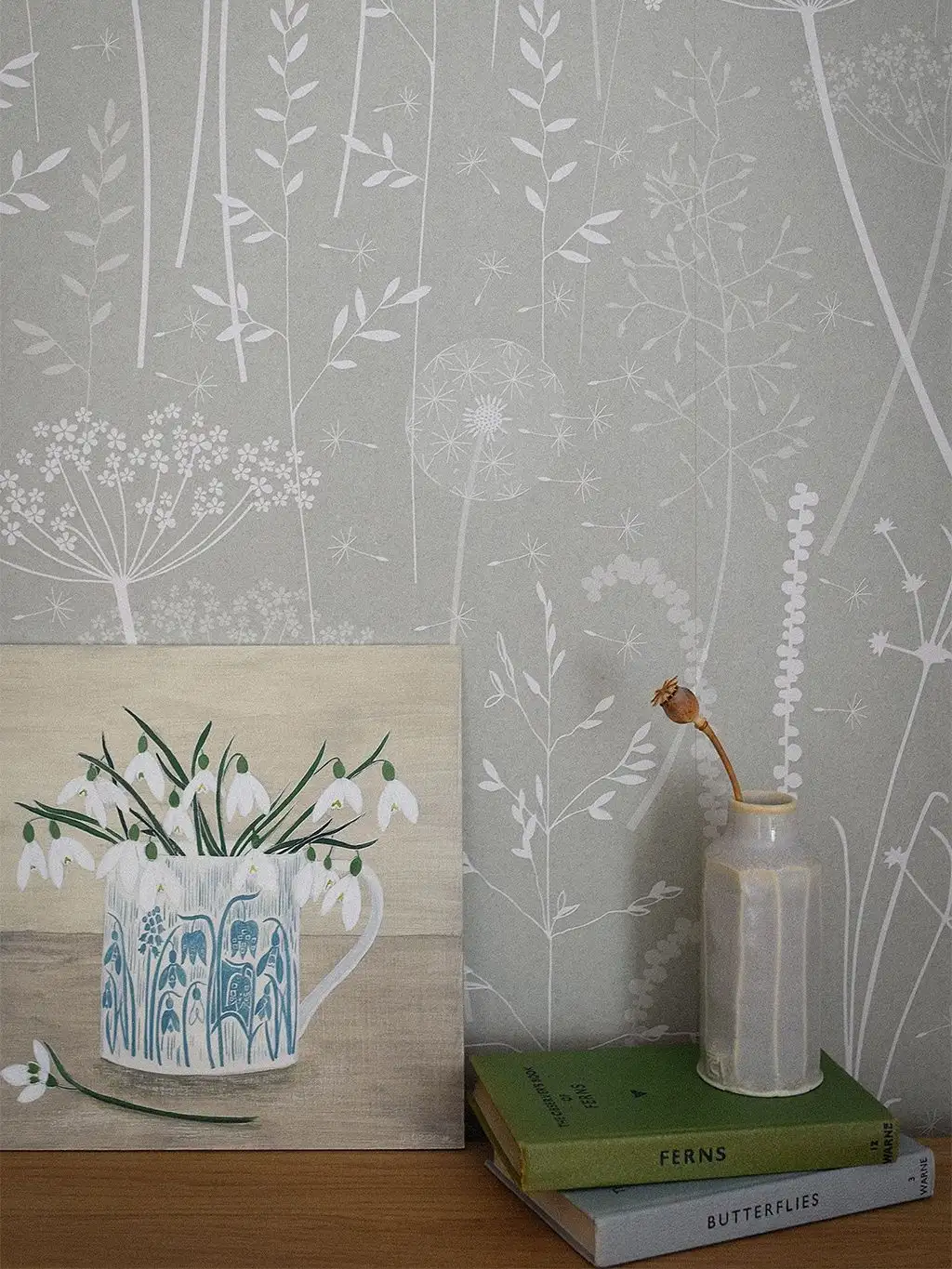 Holen Sie sich den Zauber einer sehnsüchtig verträumten Wiese voller Gräser, Wiesenkerbel und Pusteblumen nach Hause. Seine Wirkung ist sanft und beruhigend für Auge und Seele.