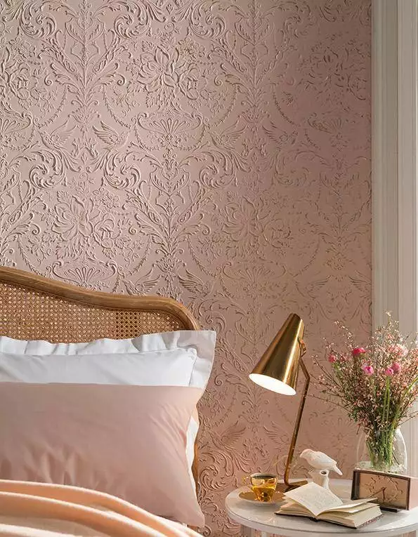Die geprägte Tapetenstruktur ist die Grundlage für eine individuelle farbliche Gestaltung mit außergewöhnlichen Oberflächeneffekten. Inspirationen finden Sie in den Raumbildern.