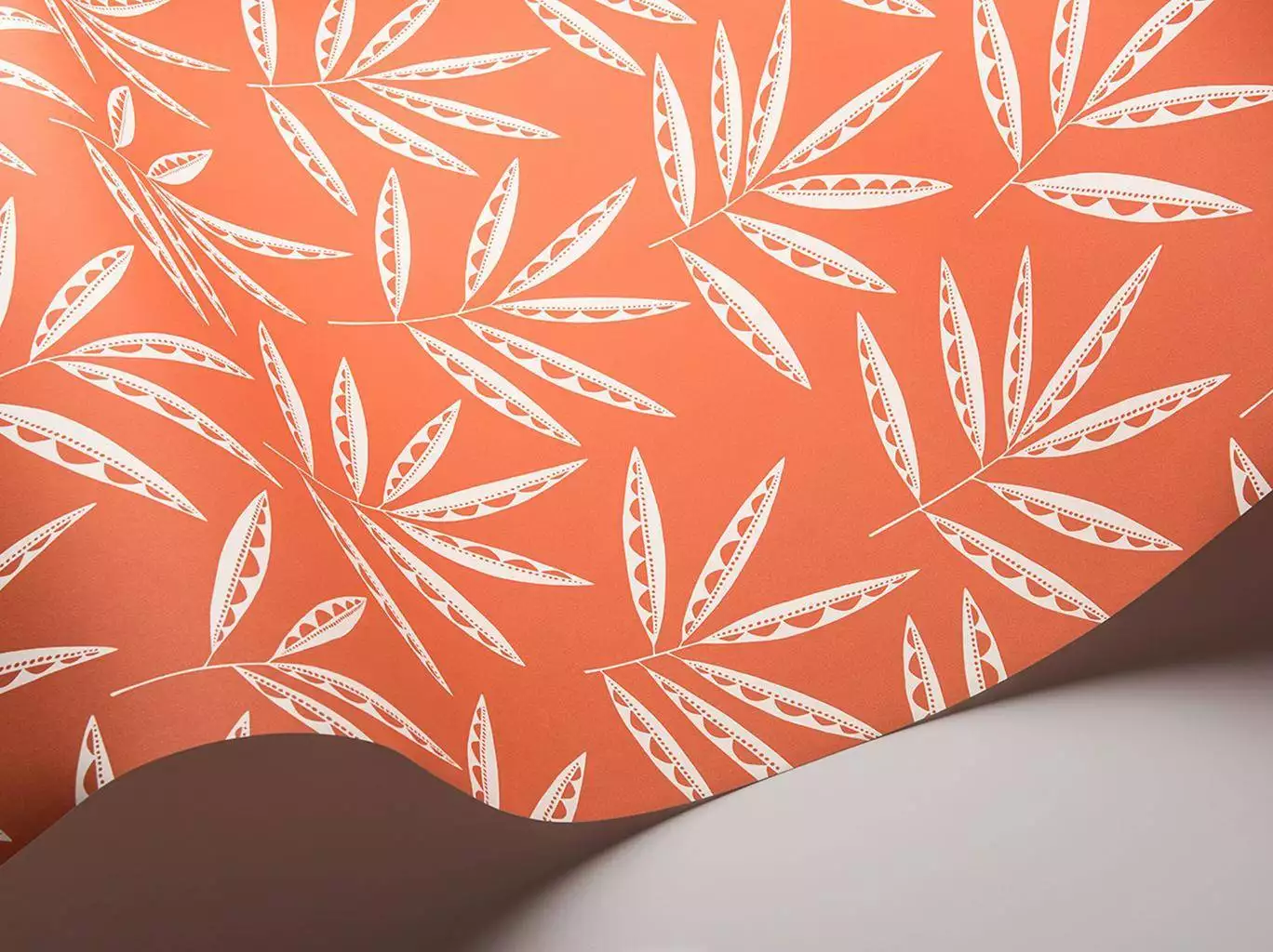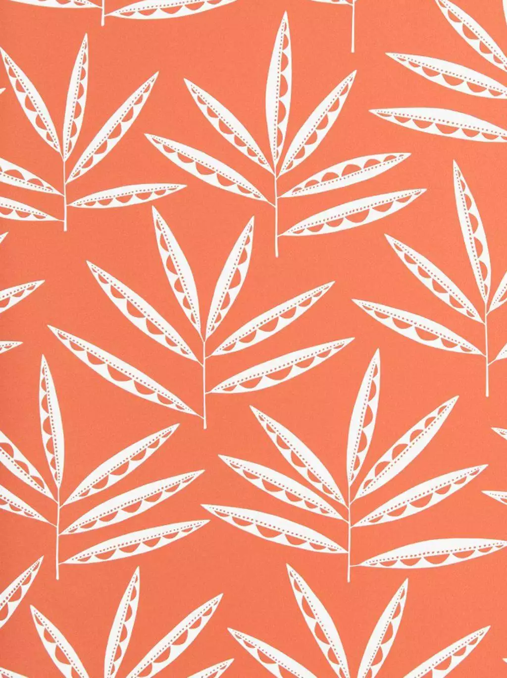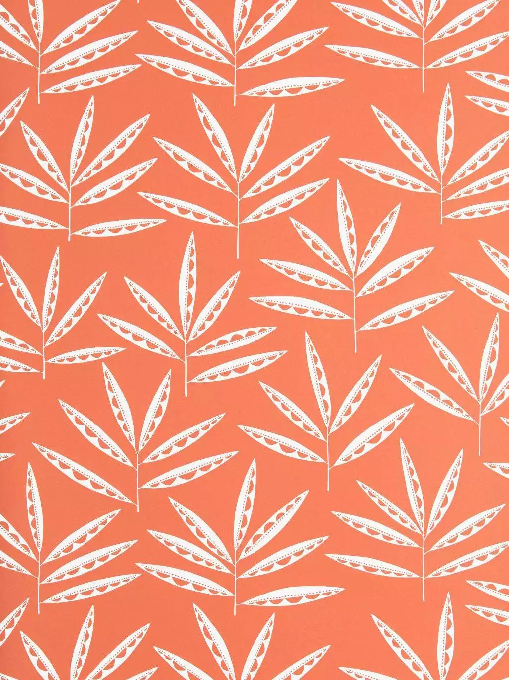 Das Design Pea Pods von MissPrint fängt in einem wunderschönen Coral Rot die Energie der Natur auf Tapete ein: Fächerartige Wedel strahlen selbstbewusst und energiegeladen nach außen, fangen die Sonnenstrahlen ein und bringen Saatgut für neues Leben hervor. Das handgezeichnete Muster wirkt klar und zugleich verspielt, erinnert an Sonnenlicht auf Blättern und schenkt dem Raum Frische, Dynamik und optimistische Leichtigkeit.