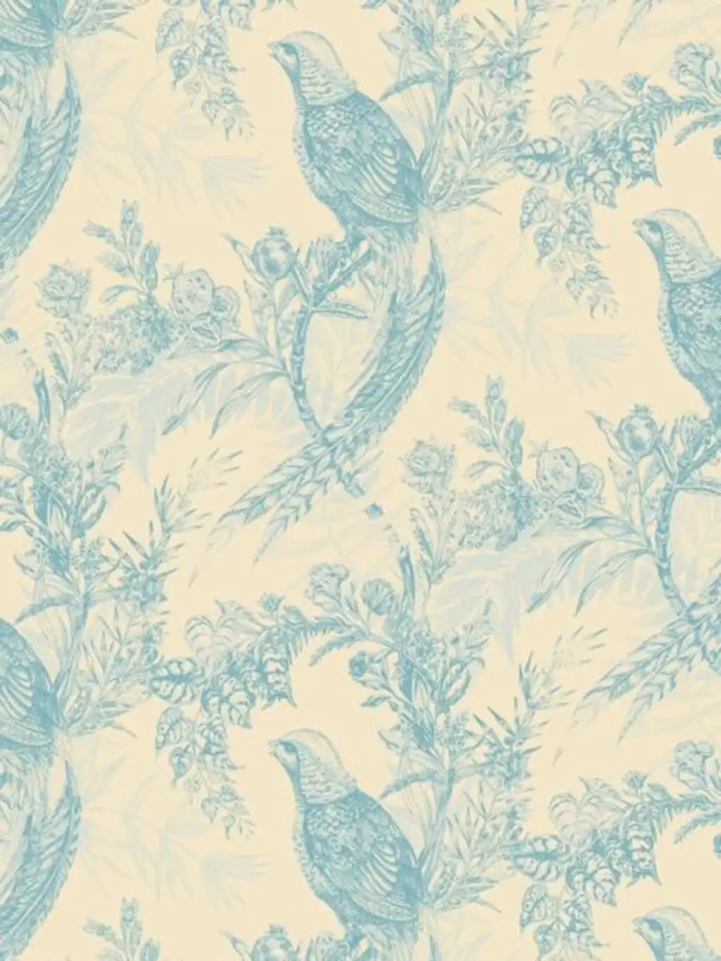 Pheasant wallpaper, Blues on Cream