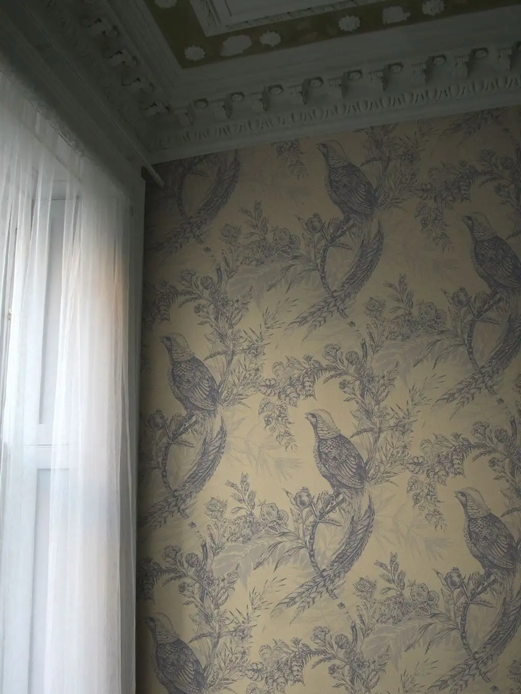Pheasant wallpaper, Greys on Cream
