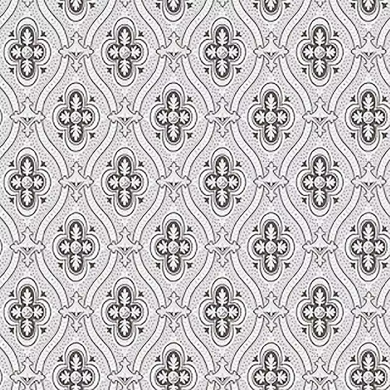 Die Tapete Pigkammaren zeigt ein gleichmäßiges, kleines Ornamentmuster in gedeckten Grau- und Schwarztönen auf hellem Grund. Die Motive erinnern an stilisierte, florale oder grafische Elemente, die in rautenförmigen Feldern angeordnet sind. Der Gesamteindruck ist dezent und dennoch dekorativ, wodurch die Tapete sowohl in traditionellen als auch in modernen Interieurs einen ruhigen, strukturierten Hintergrund bietet.