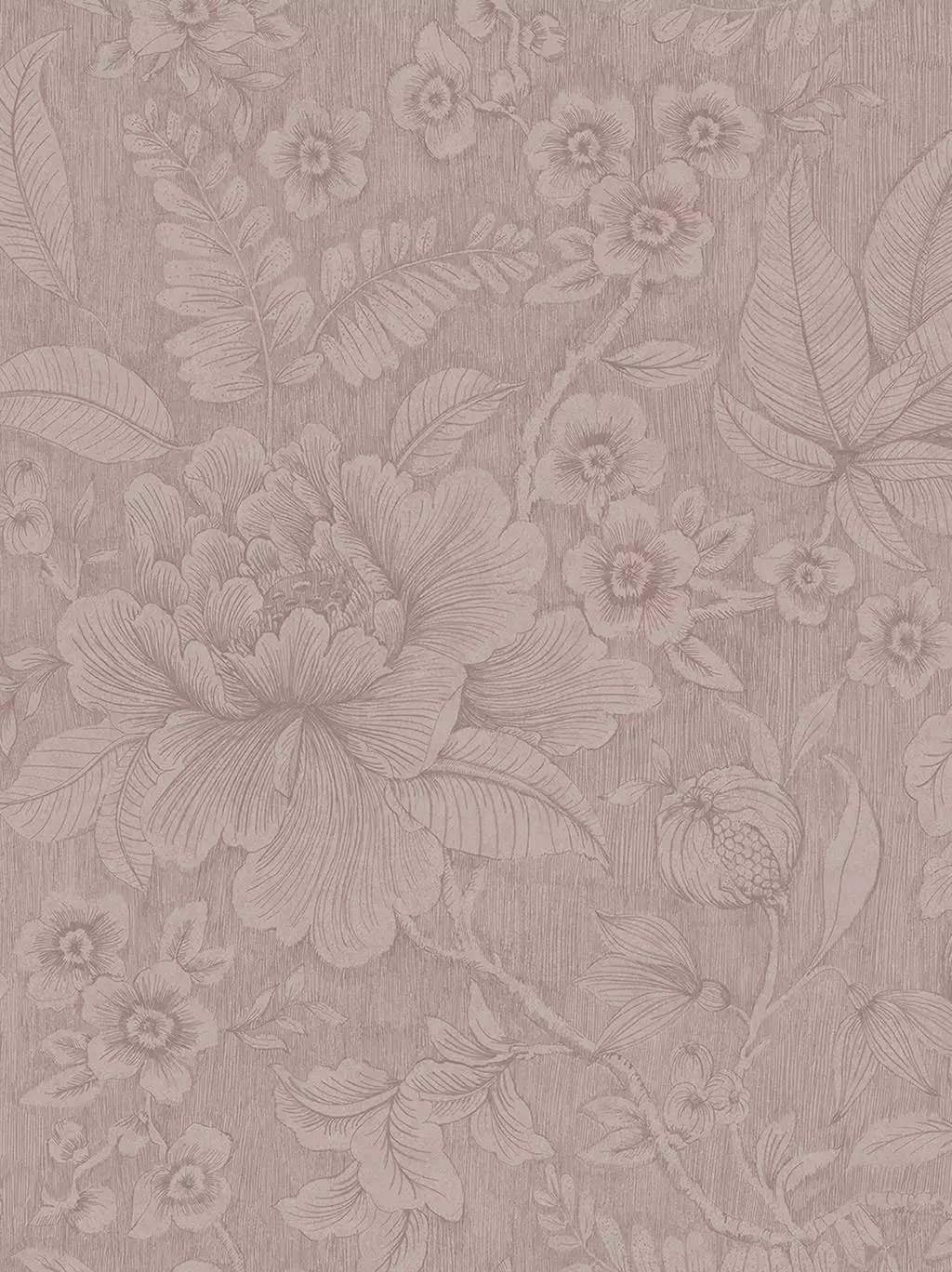 Ein feines florales Relief in Hellmauve. Pip uni Floral zeigt zarte Blüten und Blätter, Ton in Ton gezeichnet. Die Struktur wirkt ruhig, sanft und elegant – ein Muster, das durch seine Zurückhaltung überzeugt.