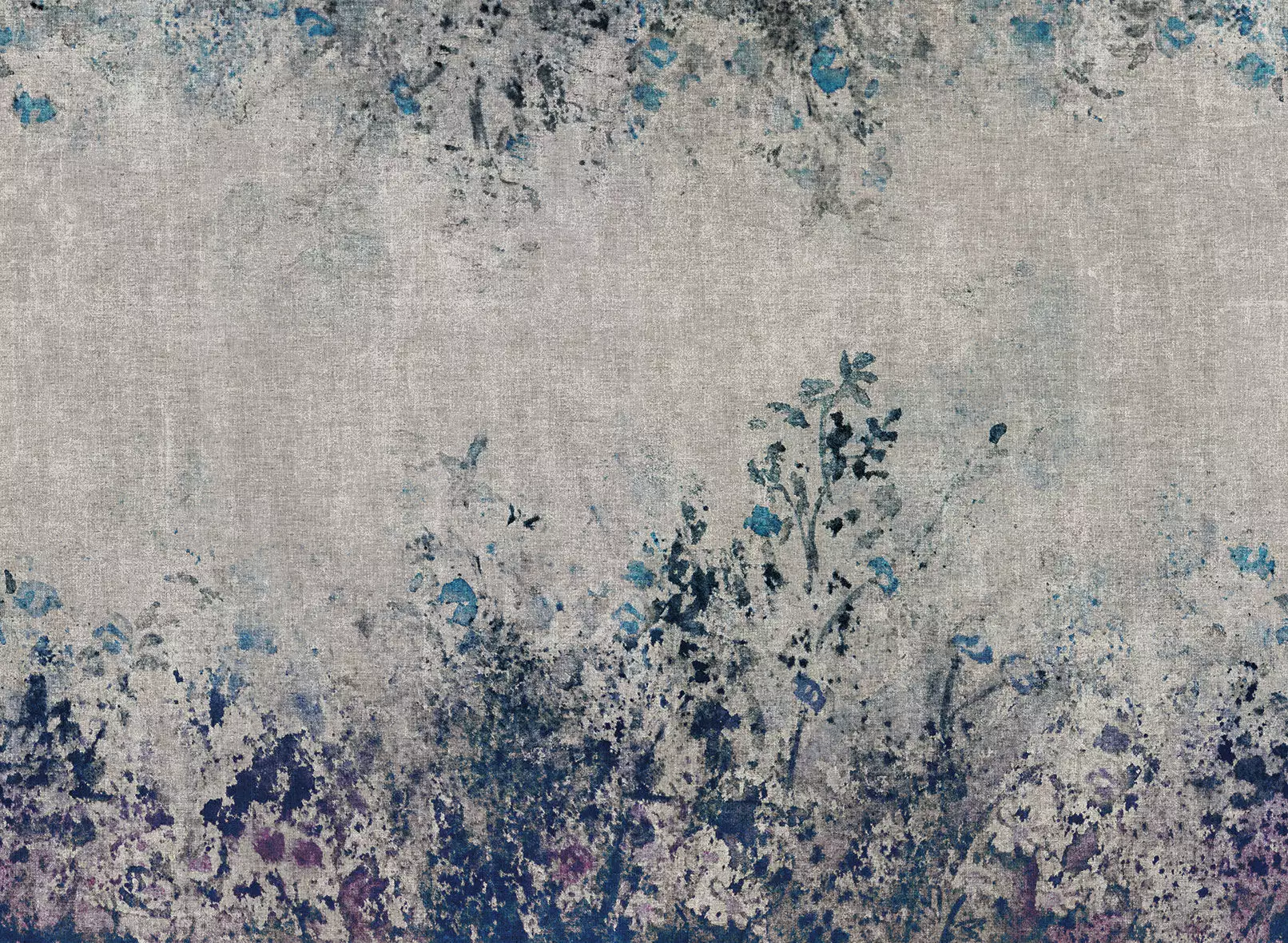 Handgemalte Blumen umrahmen diese Tapete mit einer rauen Struktur, die perfekt zu jedem Einrichtungsstil passt.