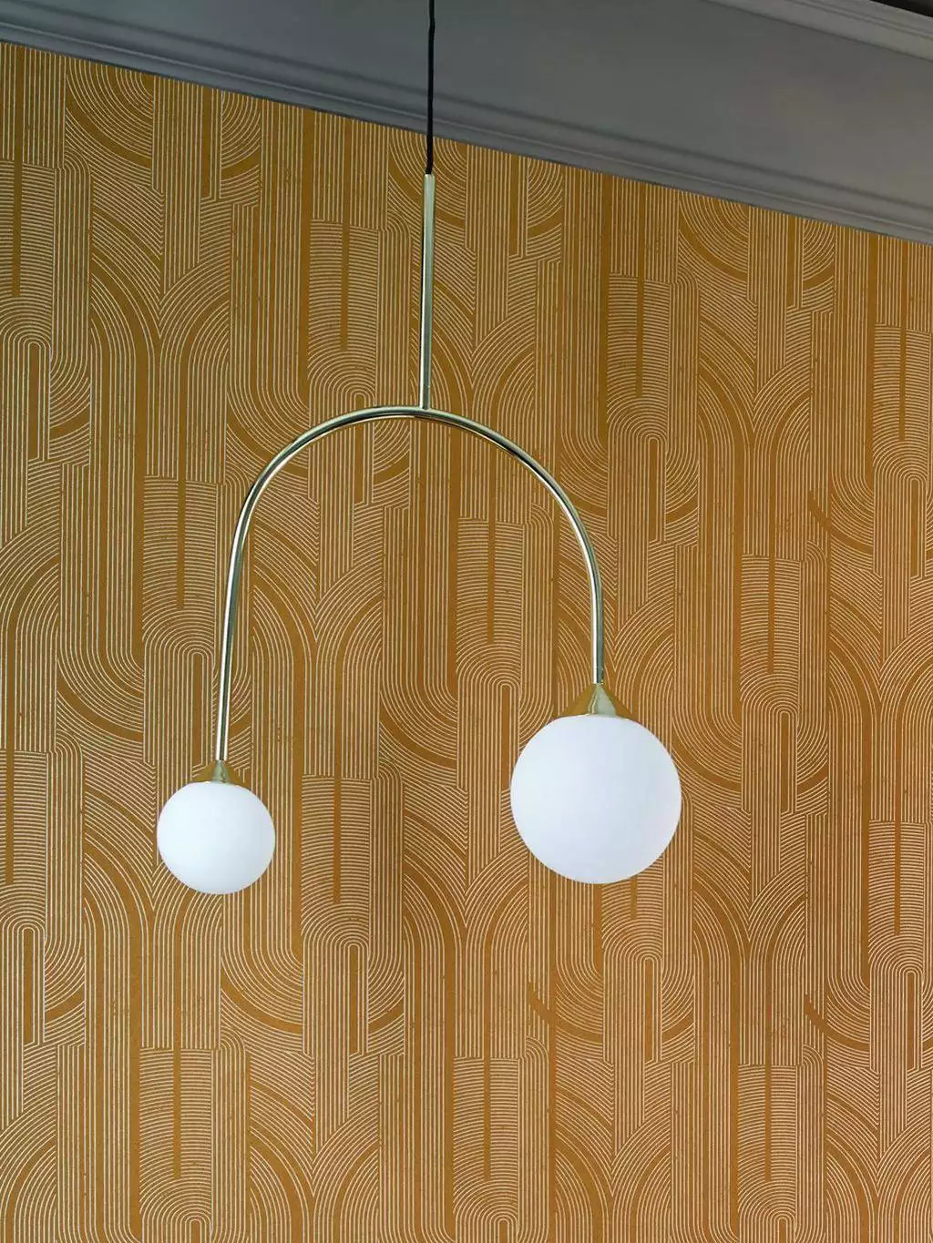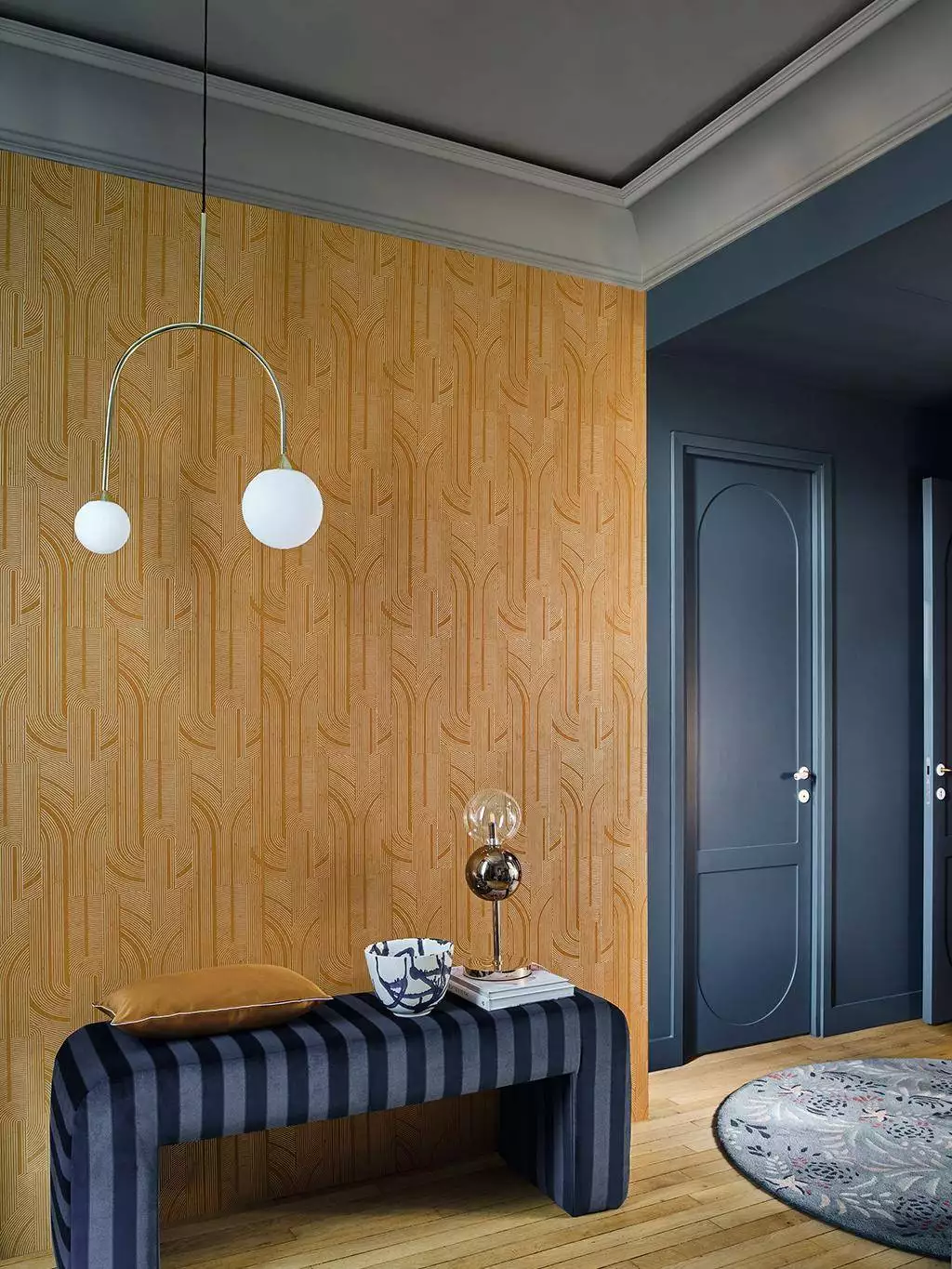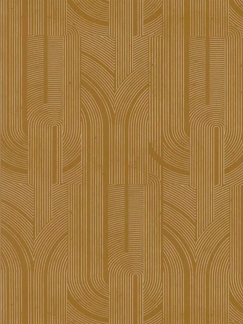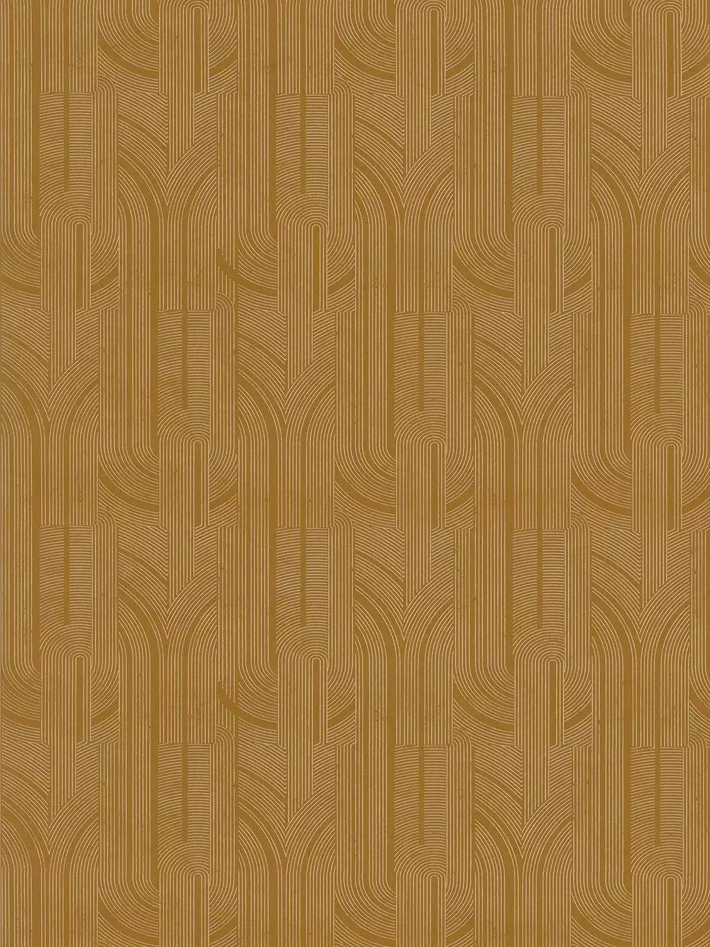 Porte Dorée, col. 40 entfaltet ein grafisches Muster, das aus geschwungenen Linien und Arkaden besteht. Die rhythmische Wiederholung erinnert an architektonische Strukturen und verleiht der Fläche eine fast monumentale Wirkung. In warmem Goldbraun gehalten, strahlt das Design Eleganz und Tiefe aus, ohne schwer zu wirken. Feine Linien zeichnen ein Spiel aus Bewegung und Ruhe, das die Wand zugleich ordnet und belebt. Eine Komposition, die die Klarheit geometrischer Formen mit dem Glanz edler Farbigkeit verbindet.