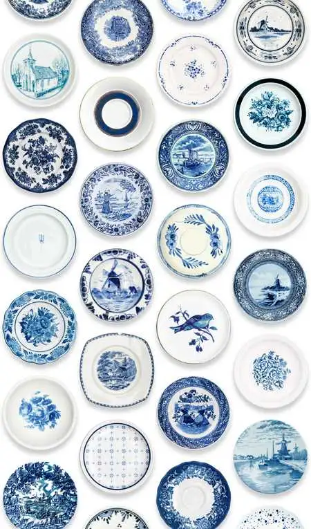 This porcelain wallpaper is totally inspired by blue tableware. Different shades of blue and graceful scenes gives the wallpaper a nice old Dutch feeling. The modern pattern makes it a wall decoration from today for any contemporary interior.