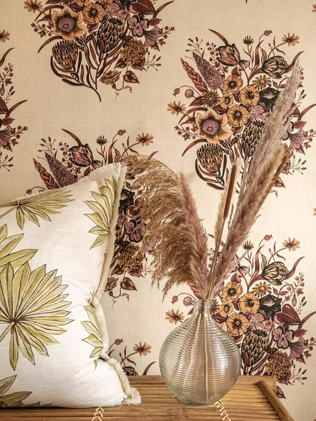Begrüßen Sie diese wunderschönen neuen Druck, Posy im Landhausstil. Ein Blumenstrauß aus Trockenblumen auf einem schönen traditionellen Gingham-Hintergrund. Die Farbgebung in Twany besteht aus warmen erdigen Farben. Mit seinen wunderschönen Schokoladen-, Flieder-, Kaffee- und Mauvetönen können wir uns diesen wunderschönen Bohème-Farbton in Wohnungen mit viel natürlichem Holz, weichem Leinen und Trockenblumen vorstellen.