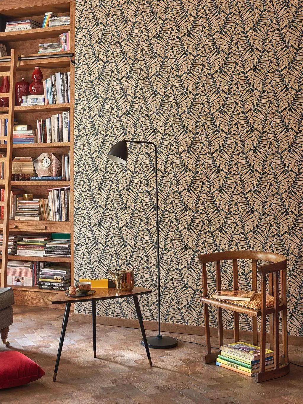 Wenn das Licht weicher wird und die Luft kühler, zeigt die herbstliche Tapete Preston von Casadeco ihre Tiefe: Blattmotive im Herringbone-Stil in warmem „Mordore Noir“ wirken wie von Herbstlaub inspiriert. Das Design fängt die Stille zwischen Herbstlaub, Wandel und Erinnerung ein und verleiht Räumen ein elegantes Profil mit seelischer Resonanz.