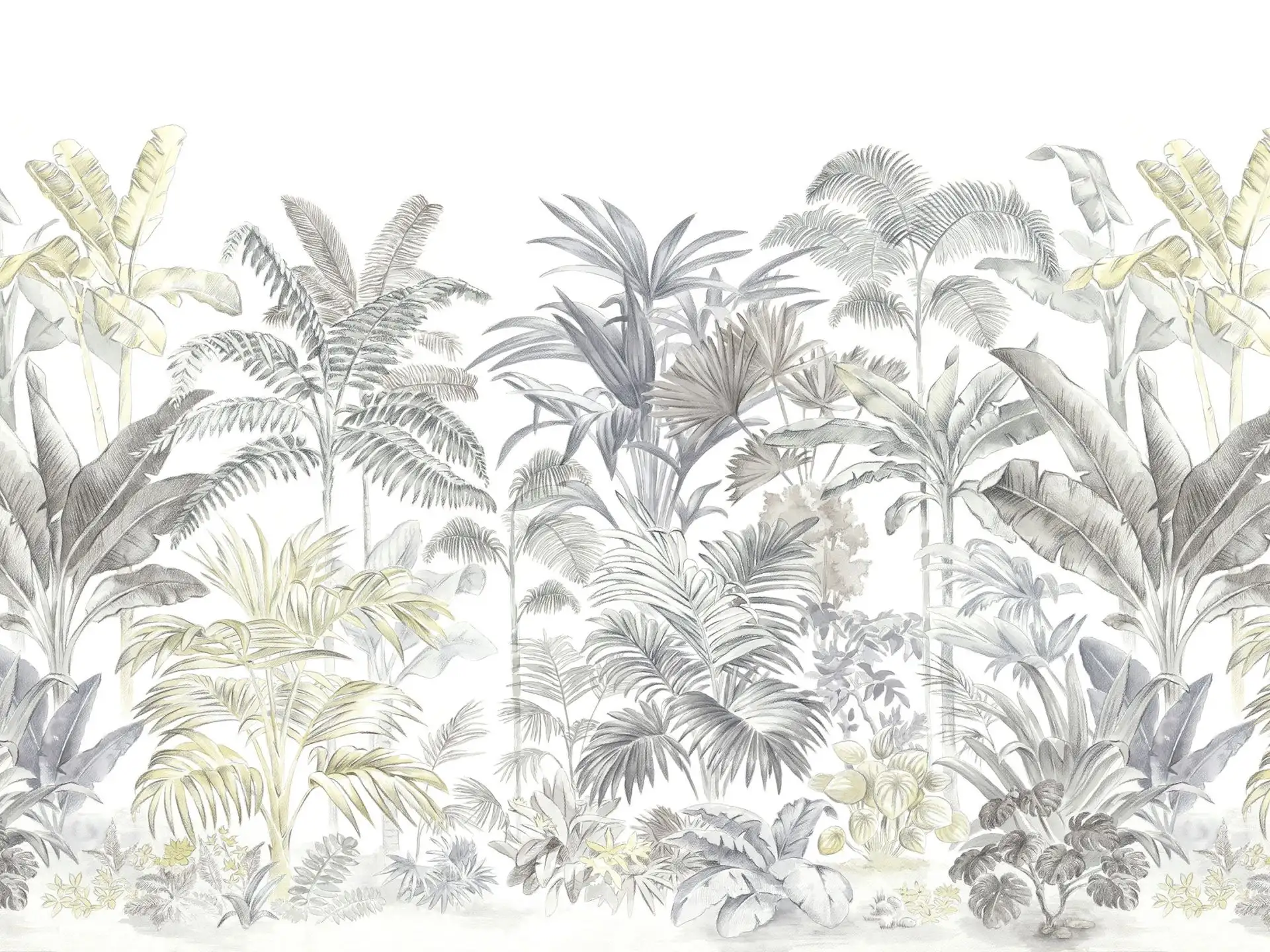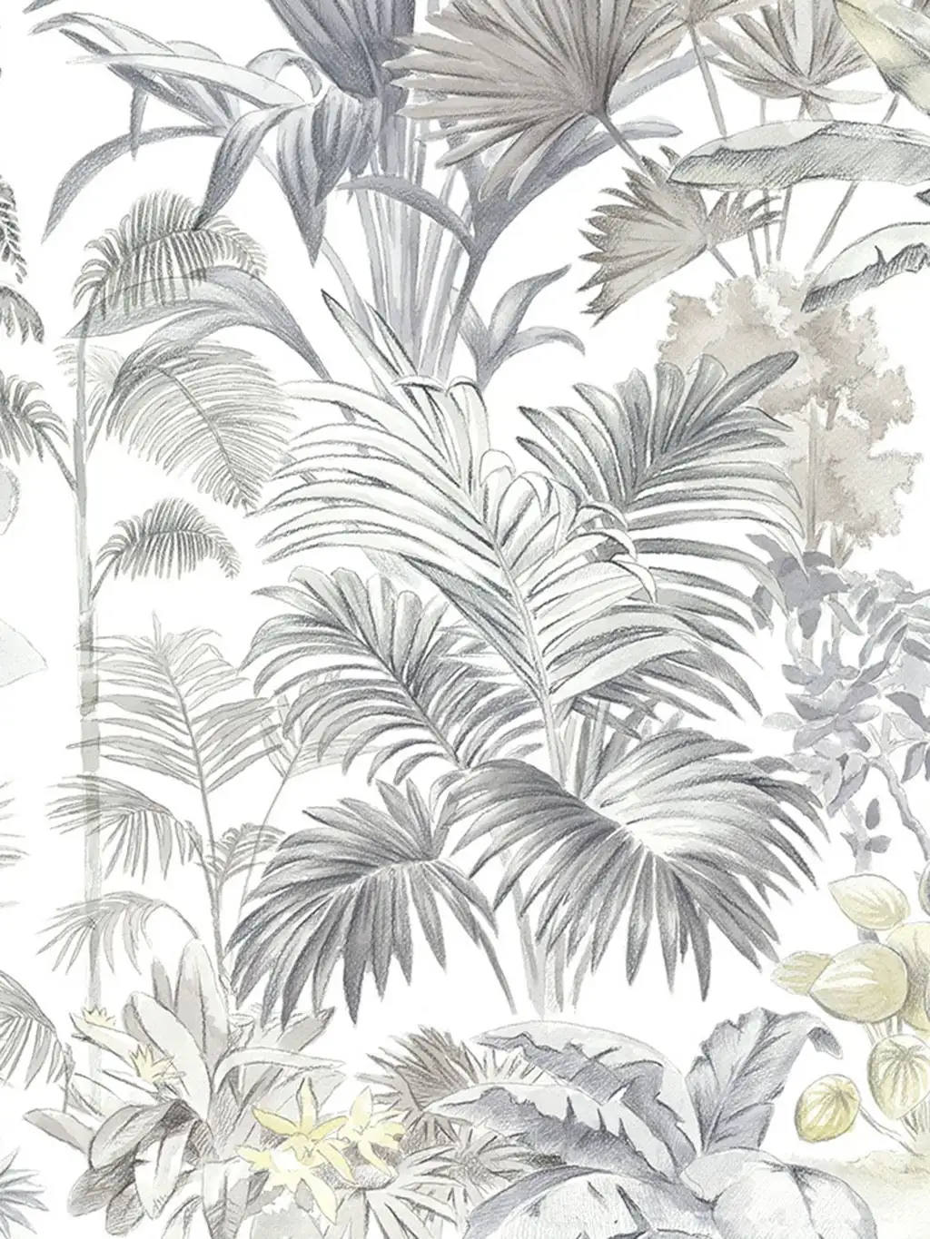 Auf der wunderschönen Fototapete im XXL-Format ranken sich feingliedrige Palmwedel nach oben und recken Ihre Spitzen in die Sonne. Dabei ist die Szenerie nicht knallig bunt wie auf einer billigen Postkarte, sondern in sanften Schattierungen von Anthrazit, Grau und einem Hauch Creme gehalten. Dadurch wirkt die Mustertapete pudrig leicht, und Sie spüren fast, wie sich die Blätter im lauen Wind des Strandes bewegen.