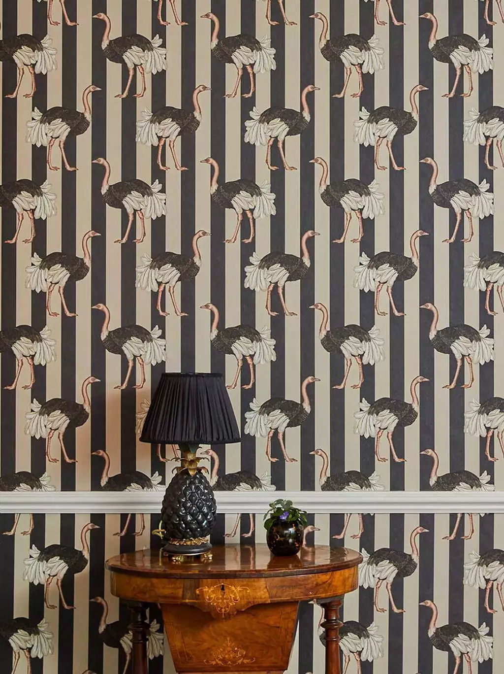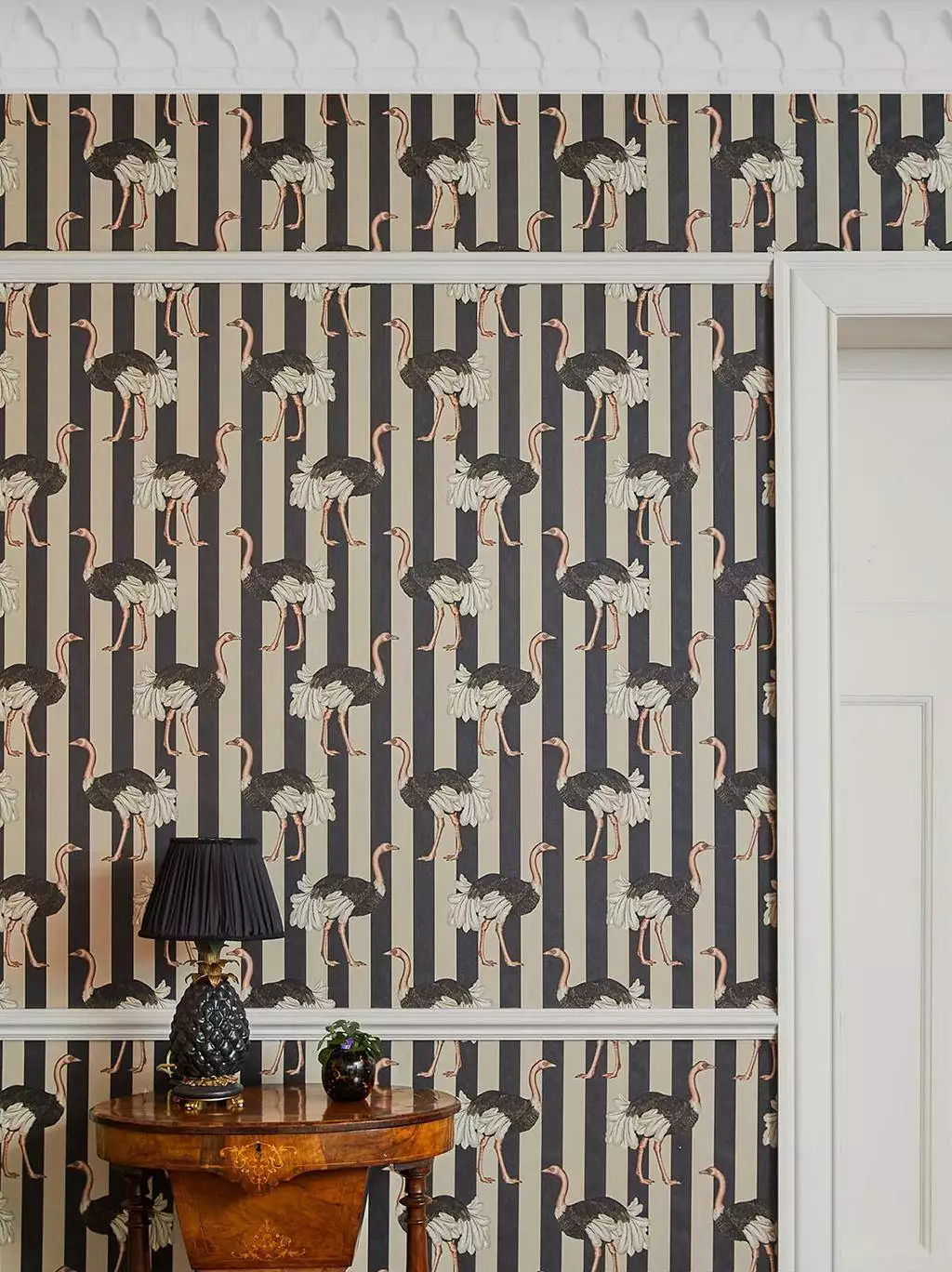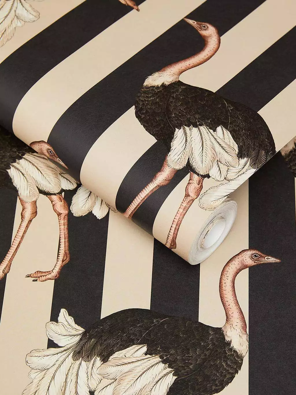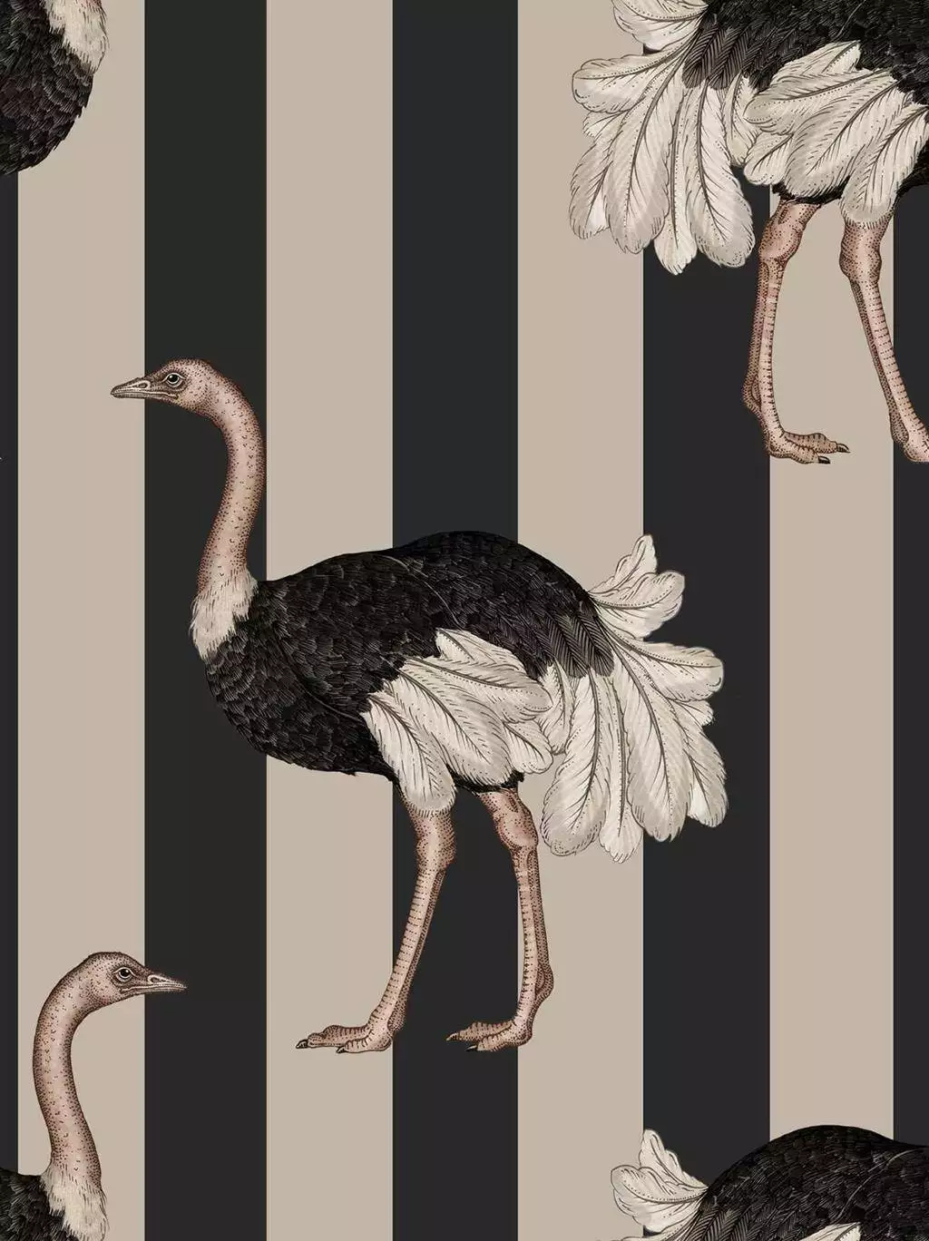 Mit der Pride Wallpaper in Clay & Off Black präsentiert House of Hackney ein auffälliges, dennoch raffiniertes Design. Handgezeichnete Strauße auf breiten Streifen in klassischem Off-Black und sanftem Ton verleihen jedem Raum eine kunstvolle, Art-Deco-inspirierte Eleganz. Dieses Muster wurde speziell entwickelt, um subtile Ecken oder kleinere Räume visuell aufzuwerten und dabei zugleich eine gewisse Opulenz zu bewahren.