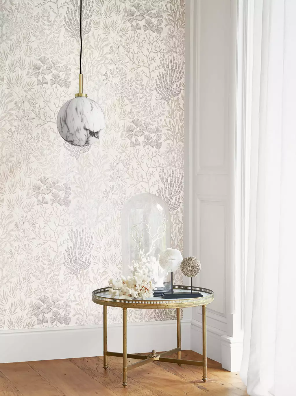 Mit der wunderschönen Luxus-Tapete Recif gelingt Ihnen die besonders edle und exklusive Gestaltung Ihres Wohnzimmers, des Schlafzimmers oder des Essbereiches. Schaffen Sie mit passenden maritimen Dekorationsgegenständen wie Muscheln und Korallen sowie ausladenden Grünpflanzen eine faszinierende Stimmung im Raum, bei der man sich sogleich auf die Suche nach einem versunkenen Schatz machen möchte.