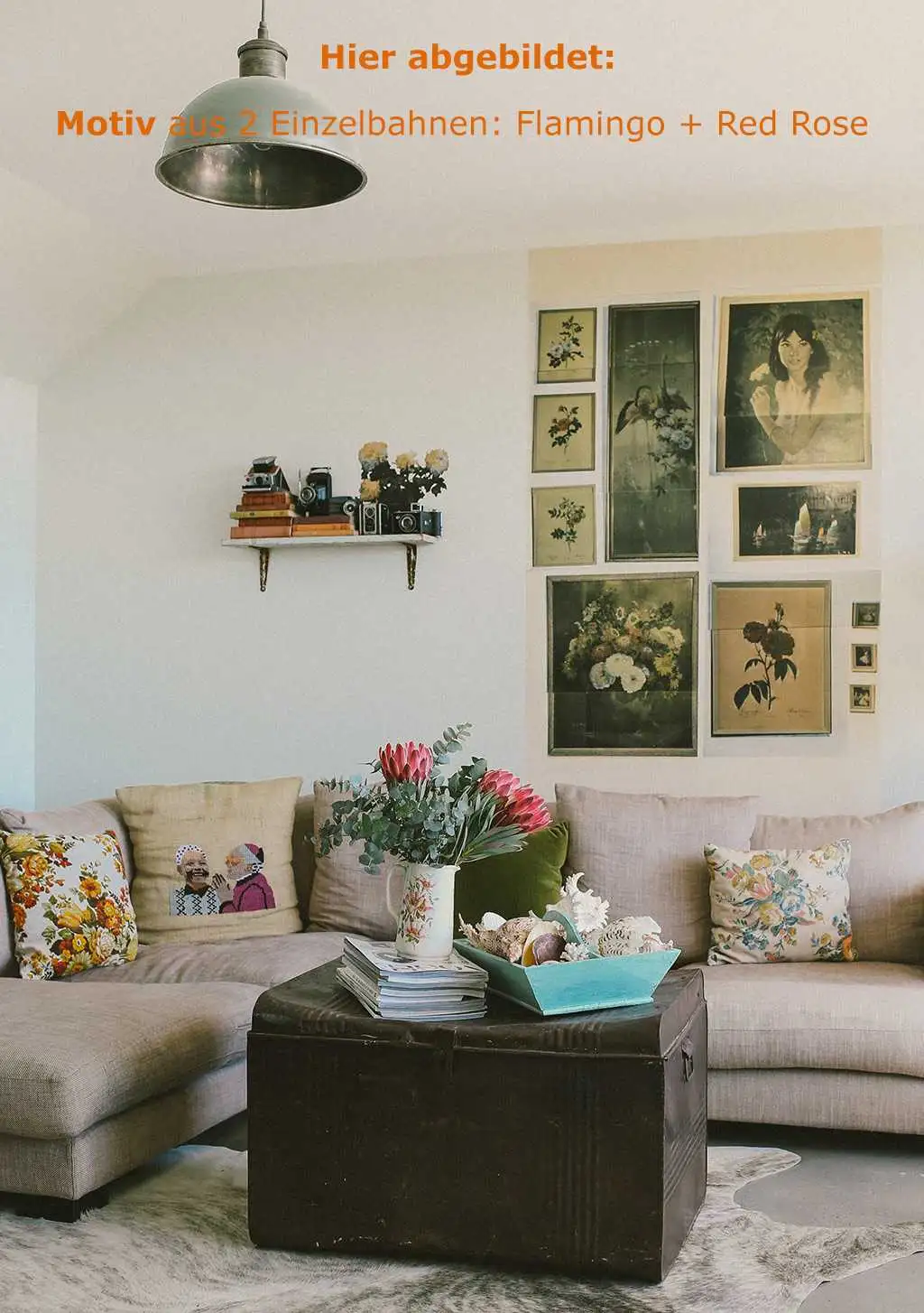 • Großformatige Muster, warme Farben und dezente Metallic-Effekte, die Tiefe und Eleganz schaffen
