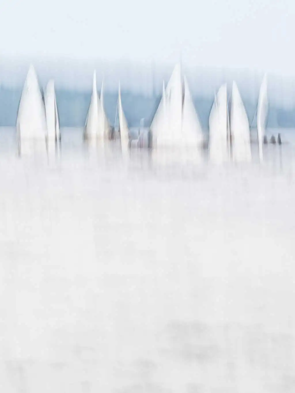 Kein Wind in den Segeln, eine glatt da liegende Havel, dahinter der Grunewald. Keine Reize für die gestresste Seele außer Flächen von Lichtblau, Lichtgrau und Weiß. Vielleicht noch ein Möwenschrei, aber den sieht man ja nicht