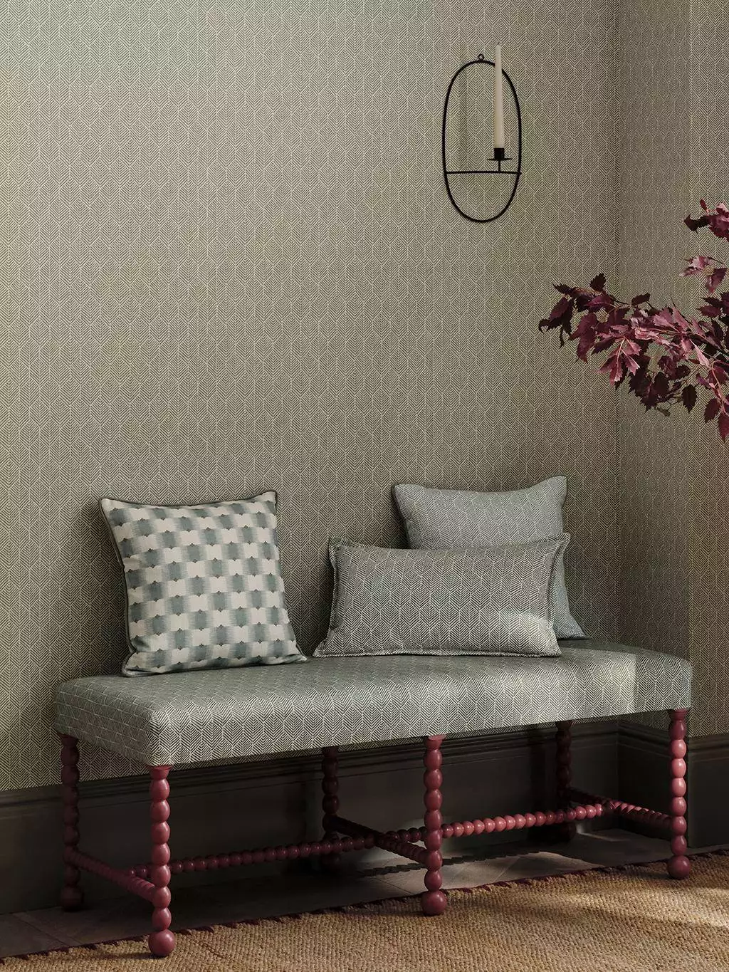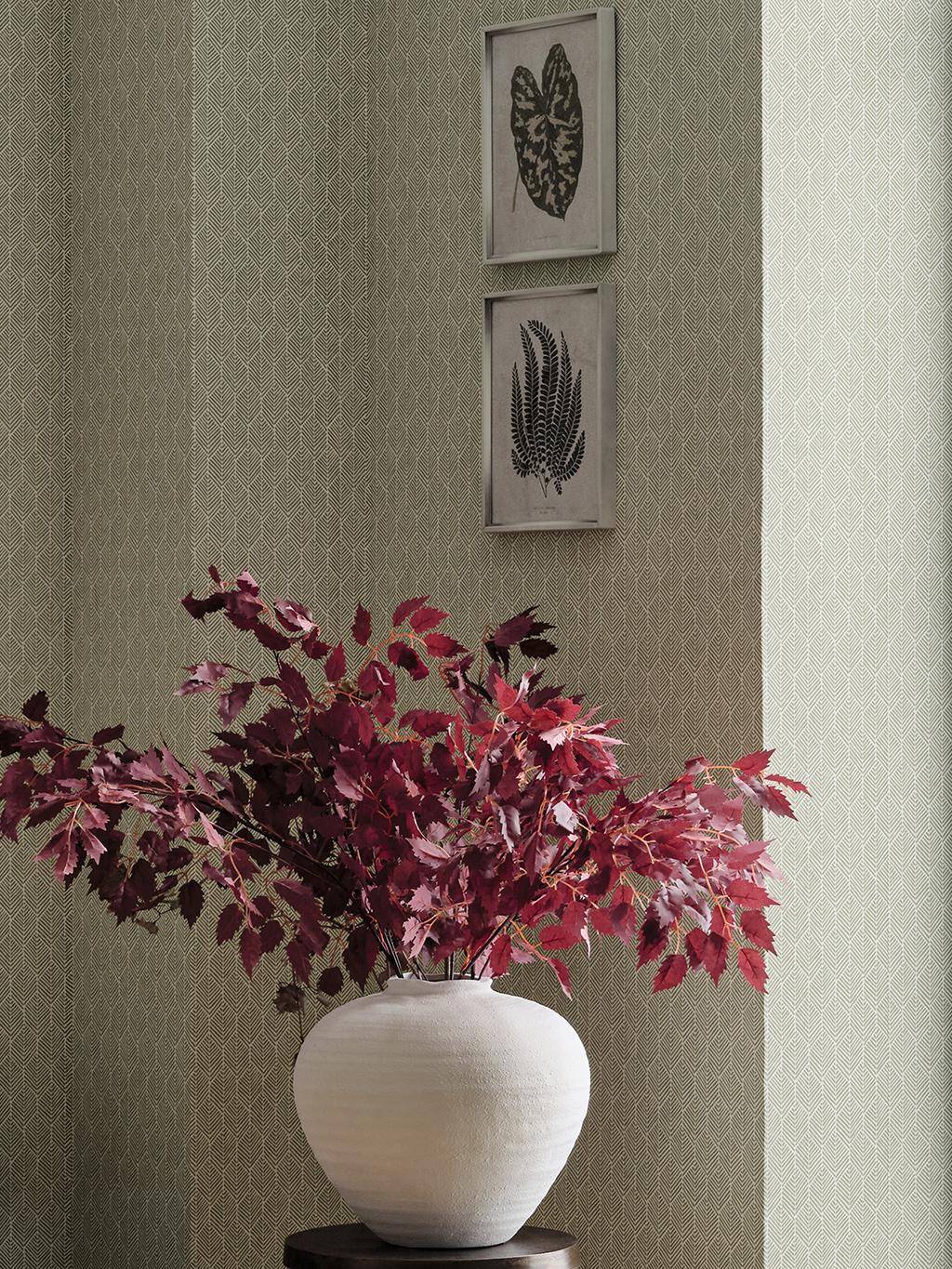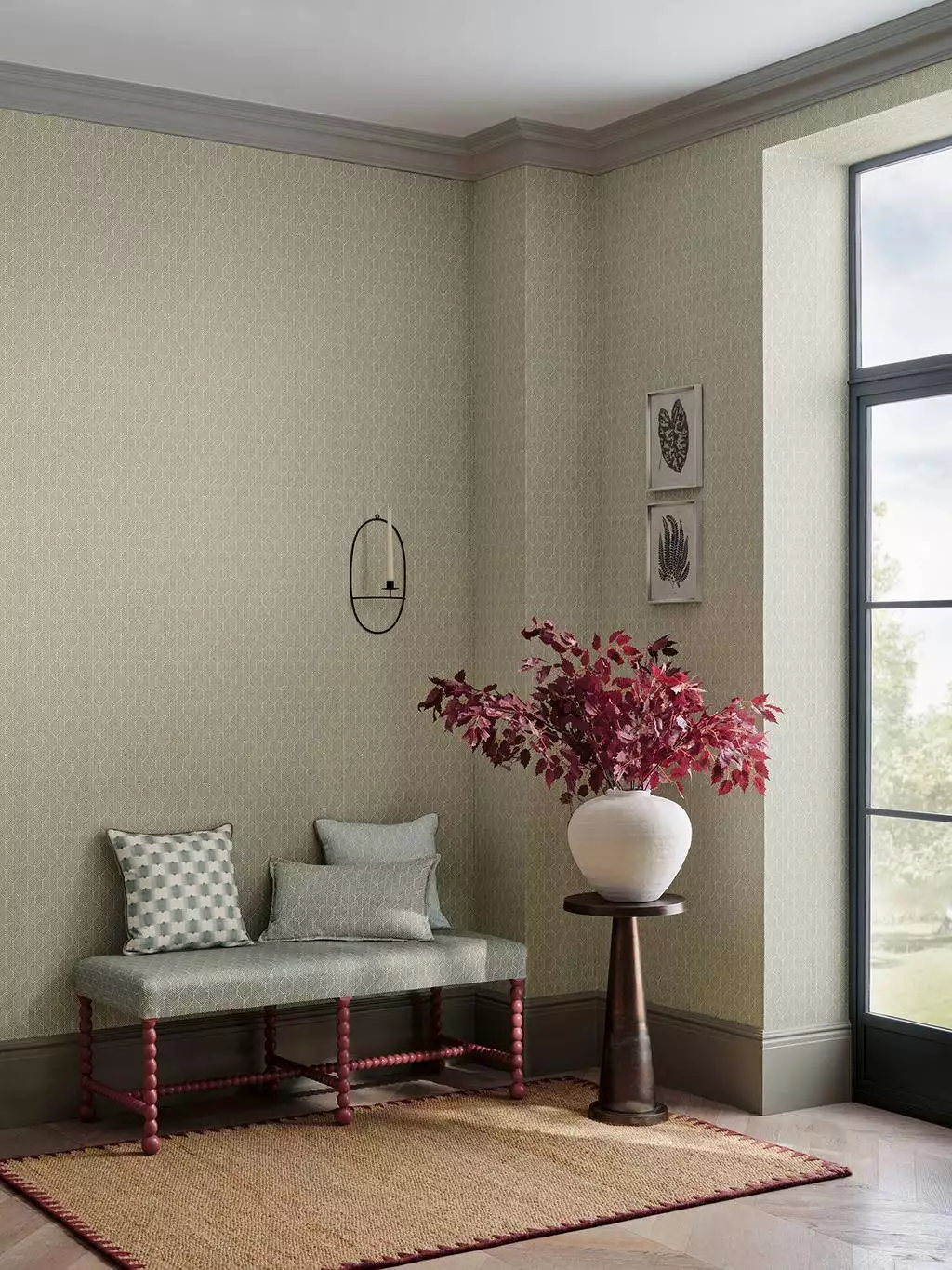 Die Tapete Remi Caper aus der Kollektion Aubin von Romo spielt mit Licht und Struktur – mal sanft, mal lebendig, je nach Tageszeit. Feine Linien formen ein geometrisches Blättermuster, das wie mit ruhiger Hand gezeichnet scheint. Die haptische Reliefoberfläche er Tapete verleiht dem Raum Charakter und Charme handbedruckter Tapeten weit vor der Industrialisierung. Eine moderne Tapete mit leiser Finesse, die Natürlichkeit und Gestaltungskunst auf angenehm unaufgeregte Weise verbindet.