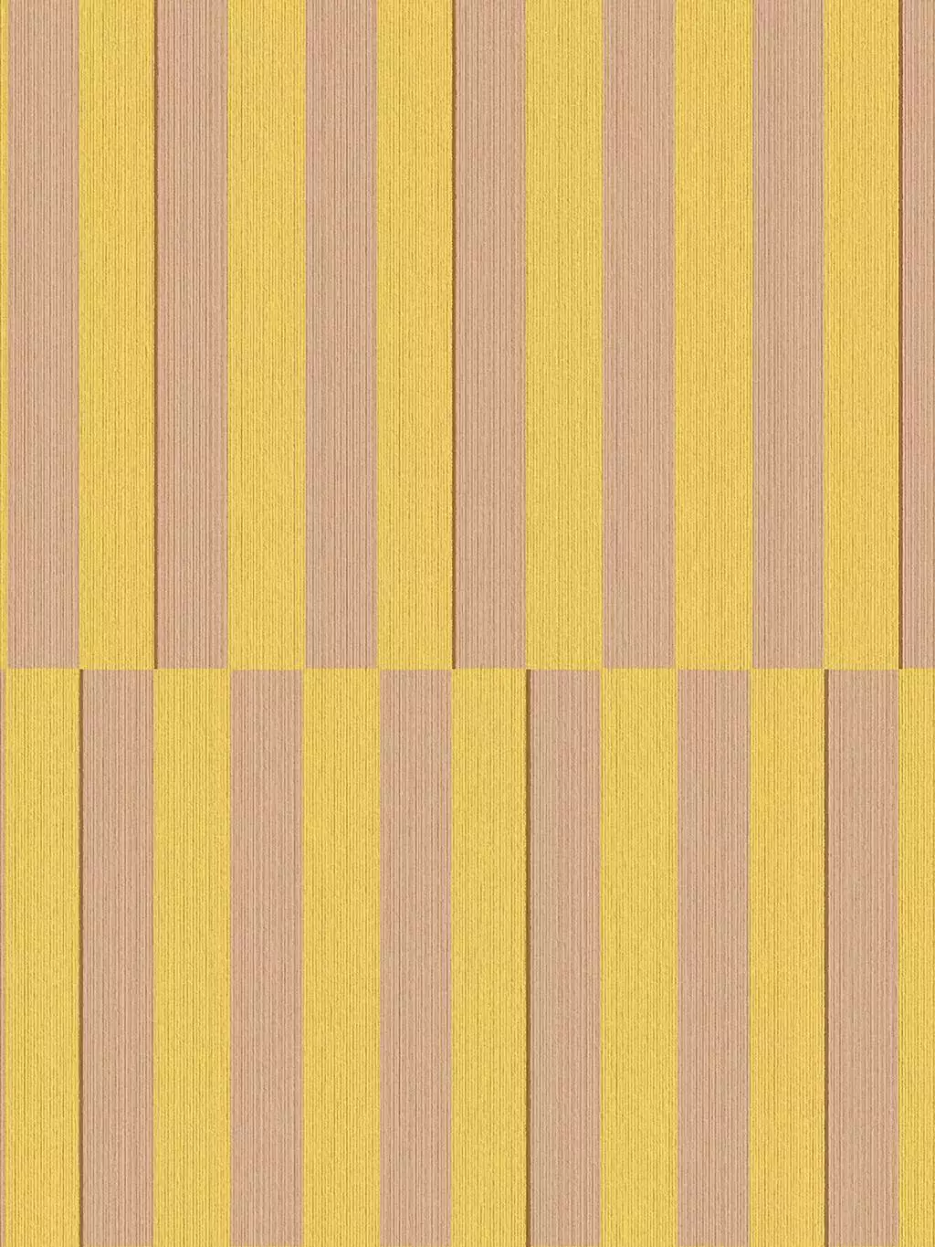 Die Tapete Revive Lines von Eijffinger kombiniert ein versetztes Streifenmuster in warmen Erdtönen und Sonnengelb mit sanftem Vintage-Charme. Die geprägte Oberfläche sorgt für eine angenehm griffige Haptik. Bordauxfarbene Abbinder durchbrechen das Design auf kreative Weise und geben der Wandgestaltung einen modernen, inspirierten Twist.