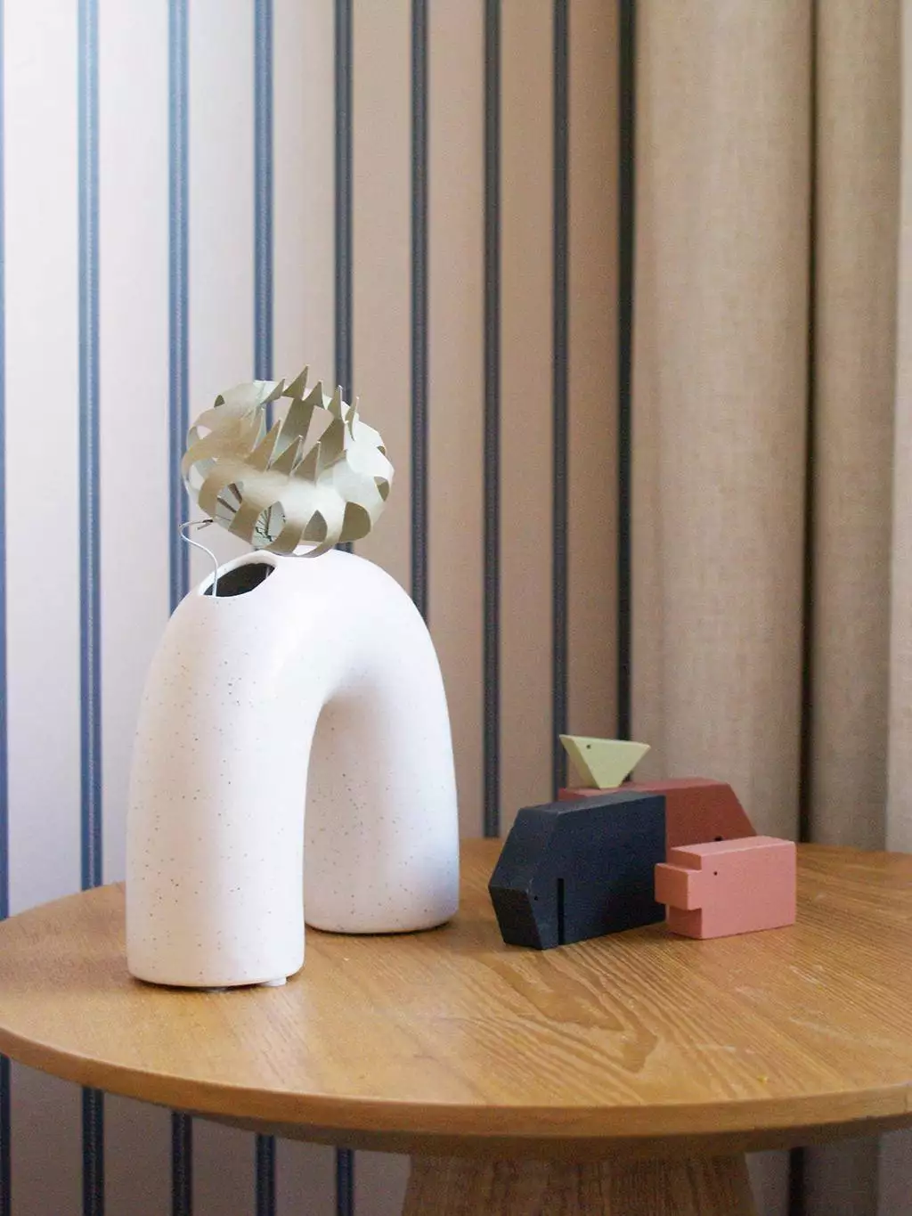 Feine Streifen in Denimblau auf Creme verleihen dieser Tapete eine ruhige, rhythmische Ausstrahlung. Das Muster wirkt klar, leicht grafisch und dennoch weich – eine gelungene Balance zwischen Struktur und Sanftheit. Besonders schön kommt es in Kombination mit natürlichen Materialien oder modernen Farben zur Geltung. Ob im Kinderzimmer oder Flur: „Ribbon, denim on cream“ bringt dezente Bewegung an die Wand, ohne aufzudrehen. Das Design ist unaufdringlich verspielt, dabei stilvoll und langlebig – perfekt für alle, die zeitloses Muster mit subtiler Raffinesse schätzen.