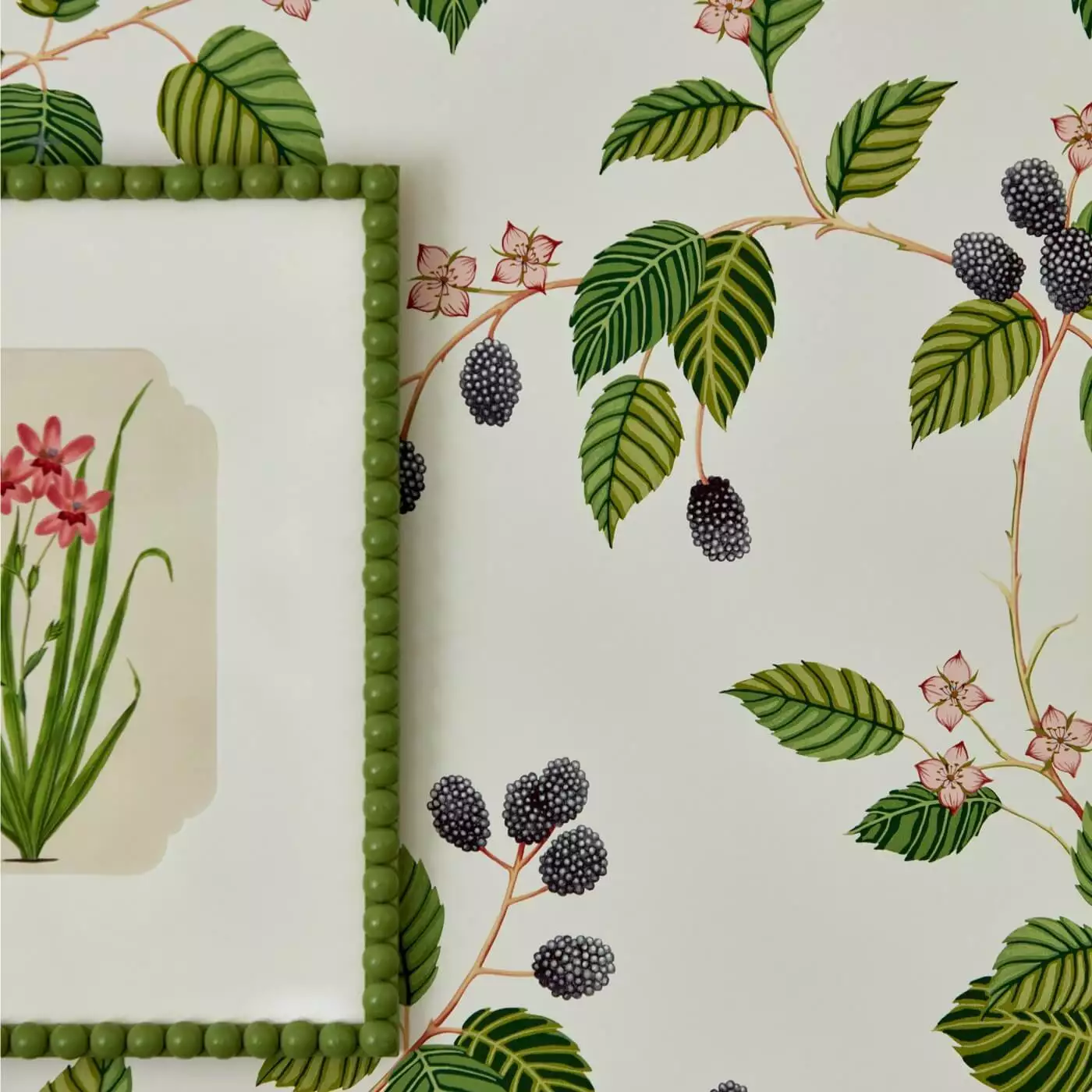 Diese prallen Beeren, die im Sanderson-Studio von Hand gemalt wurden, sehen zum Anbeißen aus. Diese hübsche, von Wäldern inspirierte Tapete, die den Familiennamen für Himbeeren und Brombeeren trägt, bringt die Natur ins Haus und ist damit eine ideale Wahl für Gartenzimmer.