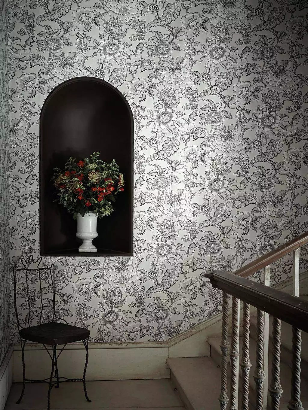 Die Tapete Sackville Street von Little Greene zählt zu den größten und am besten erhaltenen Archivmustern. Sie ist ein Fund aus einem Adelshaus und verbindet authentisches Heritage Design, dekorative Großzügigkeit und exklusive Wandgestaltung. Die dichte florale Zeichnung entfaltet eine starke Präsenz und verleiht Räumen sofort Profil. Durch die feine Linienführung bleibt das Design ausgewogen und gut kombinierbar - perfekt für anspruchsvolle Räume, egal ob klassisch oder modern. Die historische Tapete hat aufgrund des opulenten Musters den Rapport von 99 cm und eine außergewöhnliche Bahnbreite von 80 cm. Ein Design von etwa 1730.