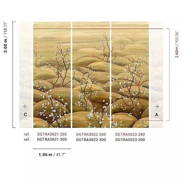 Das Motiv besteht aus 3 Bahnen (= 3 Sets). Je nach Breite der Wand benötigen Sie Set 1 (Art. 5021 = 1,06 m) + Set 2 (Art. 5022 = 1,06 m) + Set 3 (Art. 5023 = 1,06 m). Bitte teilen Sie uns bei Ihrer Bestellung im Kommentarfeld die Breite Ihrer Wand und die gewünschte Anzahl der Bahnen mit. Wir helfen Ihnen gerne weiter.