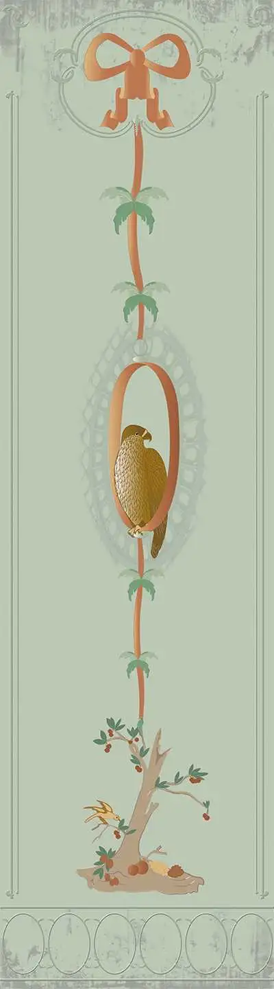 Inspiriert von den bunten und reich verzierten Zimmern und Gärten des "Sanssouci Palast" in Potsdam.Die Motive der Tapete geben ihr einen einzigartigen, fröhlichen Charakter."Sanssouci" bedeutet unbeschwert und ohne Sorgen in französicher Sprache und dies ist meine Interpretation des Palastes.