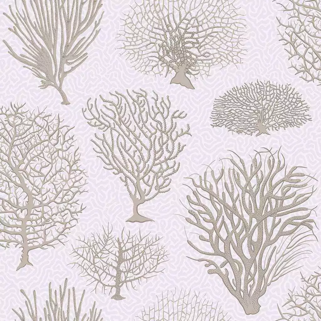 Seafern, col. 10 zeigt fein stilisierte Korallenformen, die gleichmäßig über die Fläche verteilt sind. In warmen Gold- und Bronzetönen entfaltet sich eine ruhige Eleganz, die an die stille Schönheit des Meeresbodens erinnert. Das Motiv wirkt gleichzeitig naturverbunden und ornamental – fast wie eine Sammlung kostbarer Fundstücke aus der Tiefe. Die Kombination von metallischem Glanz und organischer Formensprache verleiht dem Design edle Zurückhaltung und besondere Raffinesse. Eine Tapete, die zeitlose Eleganz mit einem Hauch Exotik verbindet.