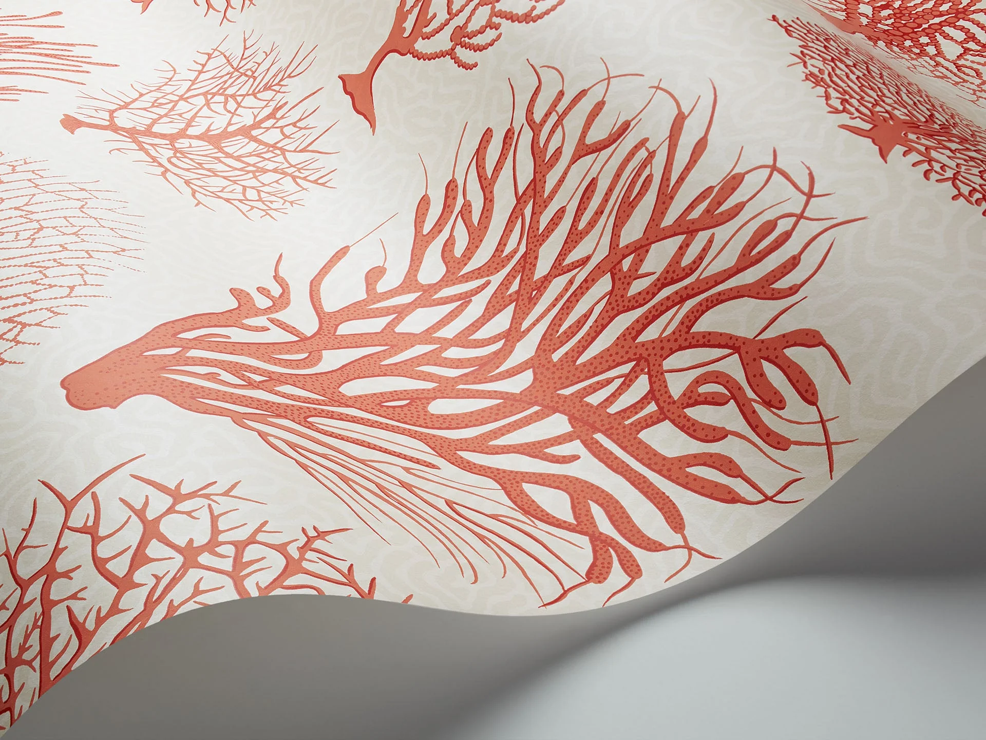 Ein fein komponiertes Korallendesign, inspiriert von botanischen Drucken des 18. Jahrhunderts. Seafern zeigt Meeresformen wie Staghorn und Ivory Tree vor dem ornamentalen Archivdruck Vermicelli. Die Tapete verbindet historische Tiefe mit modernen Farbkompositionen – von zartem Farngrün über Titaniumrot bis zu Smaragd auf Kohle mit goldener Nuance. Eine charakterstarke Tapete für Räume, die das stille Drama des Meeres in klassischer Eleganz interpretieren.