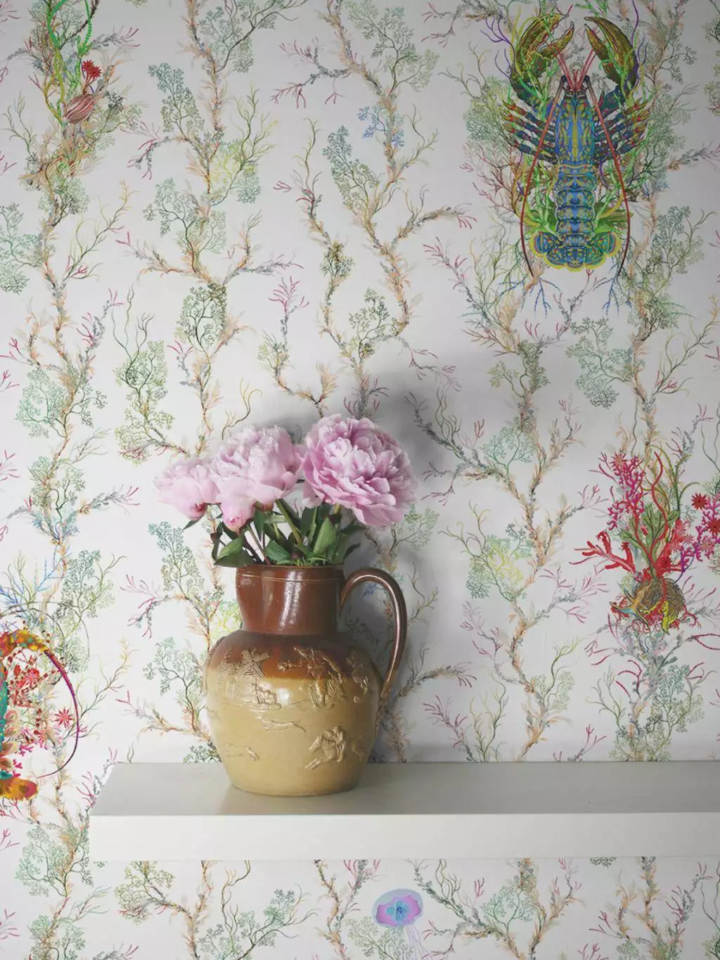 Die Siebdrucktapete Seashore Galore entführt Sie an die magische Welt der Unterwasserwelt. Das filigrane Design zeigt eine Fülle von Meeresbewohnern, darunter Seepflanzen, Korallen und prächtige Hummer, die in schillernden Farben auf einem zarten, pastelligen Hintergrund präsentiert werden. Diese Tapete ist mehr als nur eine Wanddekoration – sie ist eine Hommage an die Schönheit des Meeres und ein Kunstwerk, das Natur und Design in Perfektion vereint.