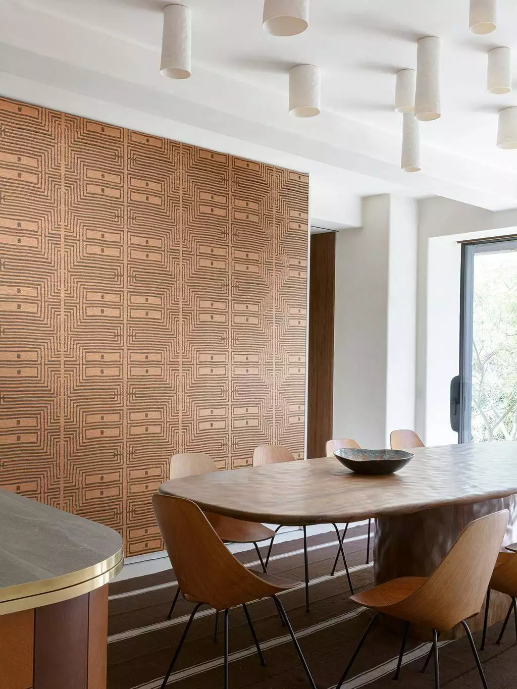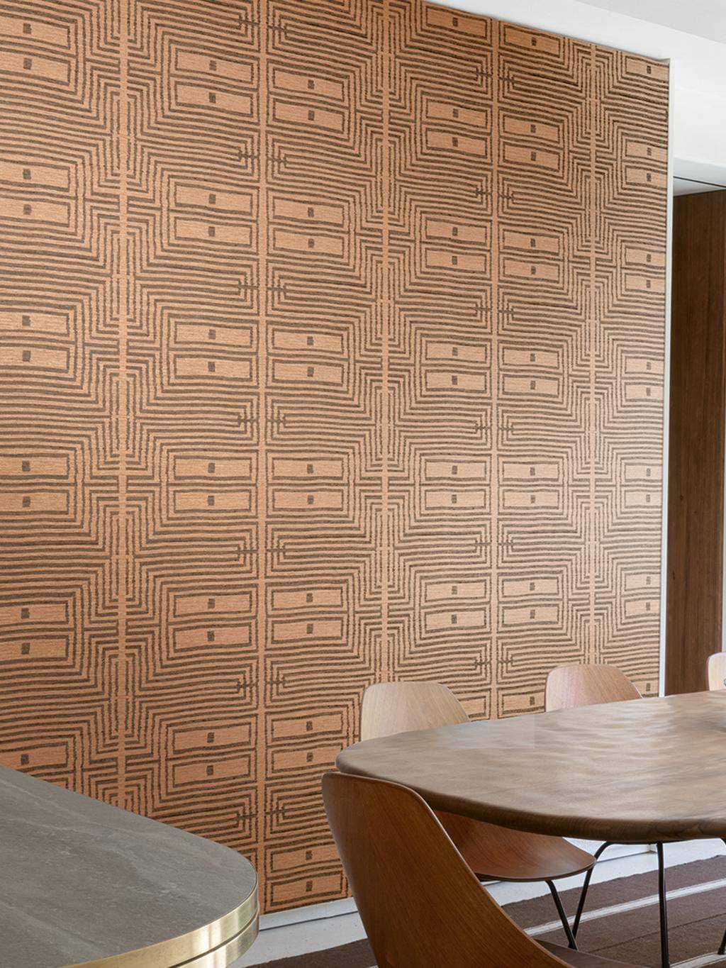 Die Tapete Serica Mocca spielt mit der Anmutung handgewebter Stoffe. Ihr Name verweist auf Serica, Latein für Seide. Und deren textile Tiefe mit all ihren feinen Unregelmäßigkeiten und ihre ruhige Kostbarkeit spürt man in der Struktur und im Design dieser Tapete. Das geometrische Muster wirkt bewusst unperfekt, wie von Hand gezogen. So entsteht eine klare, organische Oberfläche, die grafischen Rhythmus und textile Wärme gekonnt vereint. Wer sich Serica Mocca in den Raum holt, profitiert von einer bewusst gestalteten Atmosphäre mit Kontur, Farbigkeit und Ruhe, die Räume klar, wertig und einladend wirken lässt.