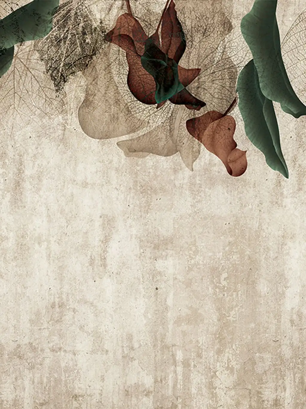 • Großformatige Muster, warme Farben und dezente Metallic-Effekte, die Tiefe und Eleganz schaffen