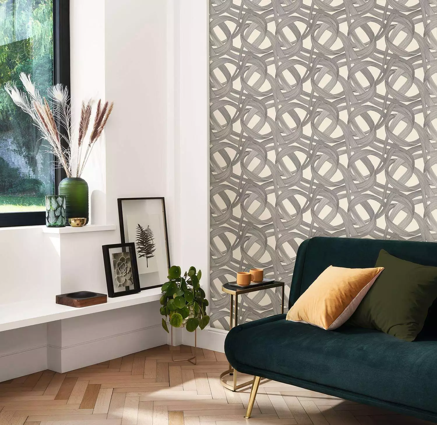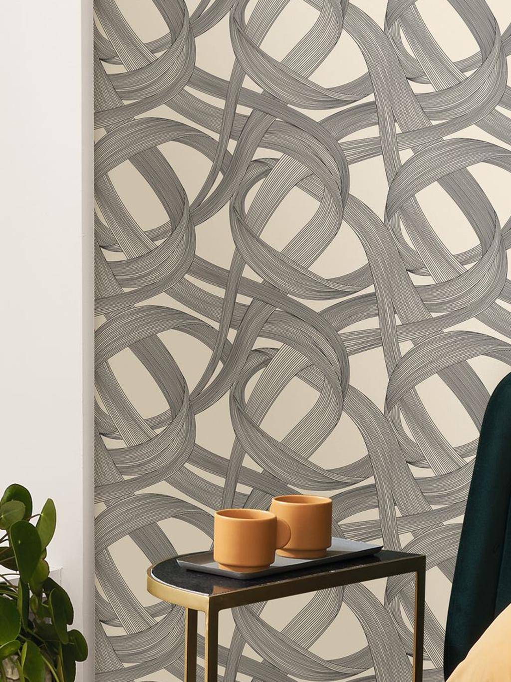 Die Tapete Shimmy bringt die Wände zum Wackeln – ganz im Stil der 20er Jahre. Der beliebte Tanz Shimmy war damales bekannt für seine wirbelnden, drehenden Bewegungen. Die gleichnamige Tapete greift diesen Rhythmus auf und verwandelt ihn in ein grafisches Spiel aus schwungvoll verschlungenen Linien – bewegt, präzise und voller Energie.