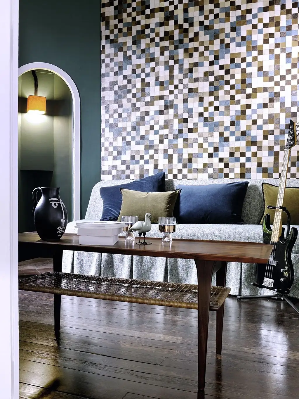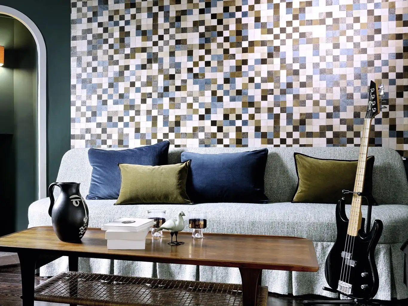 • Großformatige Muster, warme Farben und dezente Metallic-Effekte, die Tiefe und Eleganz schaffen