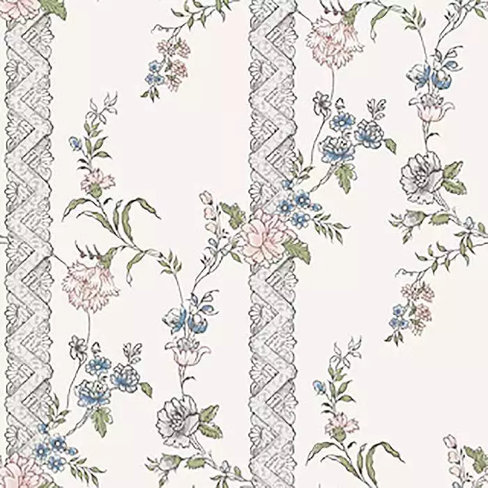 Die Tapete Slottsteatern, col. 7 kombiniert ein feines Streifenmotiv mit locker gezeichneten Blumenranken in Rosa, Blau und Grau. Das Muster ist regelmäßig, aber nicht starr, und schafft eine ruhige, wohnliche Atmosphäre. Die gedämpften Farben wirken zurückhaltend und lassen sich gut mit natürlichen Materialien und hellen Möbeln kombinieren. Ideal für Räume, in denen eine leichte, klassische Struktur gewünscht ist – etwa im Flur, Schlafzimmer oder Arbeitsbereich.