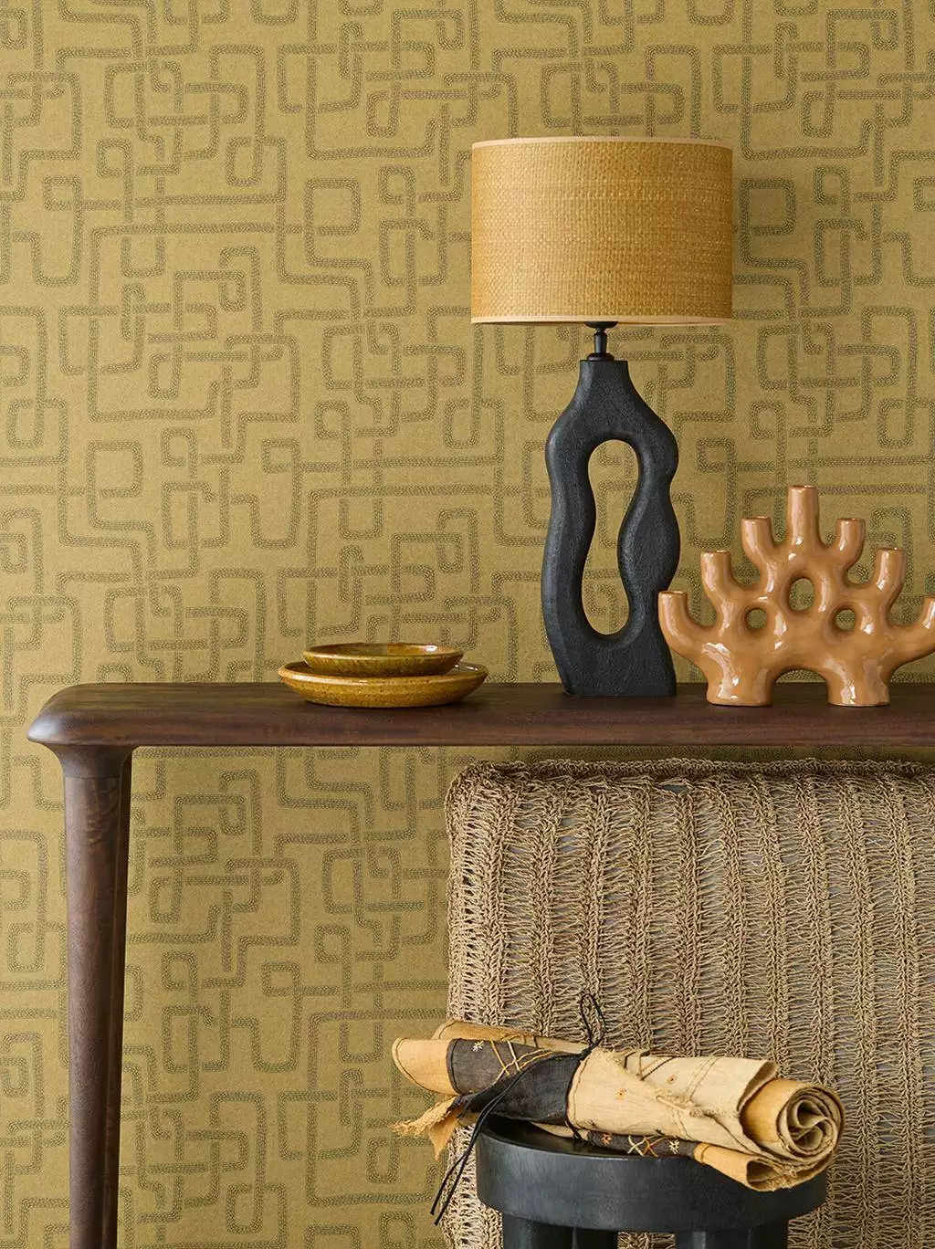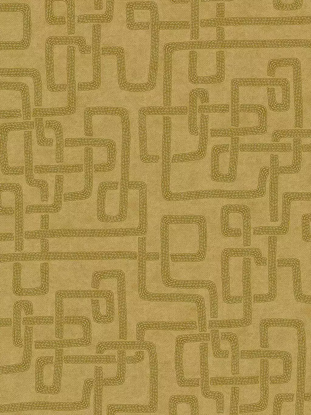 Solange Geometry 340234 trägt definitiv 60ies-Elemente in sich. Seilartig strukturierte, geometrischen Muster erinnern an Formen aus Mid-Century Design: geschwungene Rechtecke, verbindende Linien, klare Wiederholungen. Retro-Vibes, modern umgesetzt.
