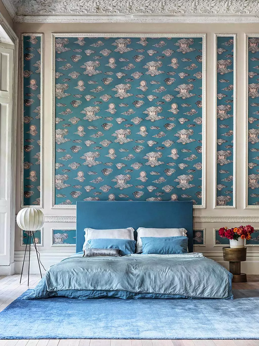 In der Farbstellung col. 10 trifft ein satter, kühler Türkiston auf nuancierte Grau- und Cremetöne. Das Zusammenspiel aus Ornamentik und Fläche erzeugt Tiefe, ohne laut zu sein. Ideal für Räume mit Charakter – subtil erzählerisch, aber klar im Ausdruck. Ein Design mit ikonischer Handschrift und starker atmosphärischer Wirkung.