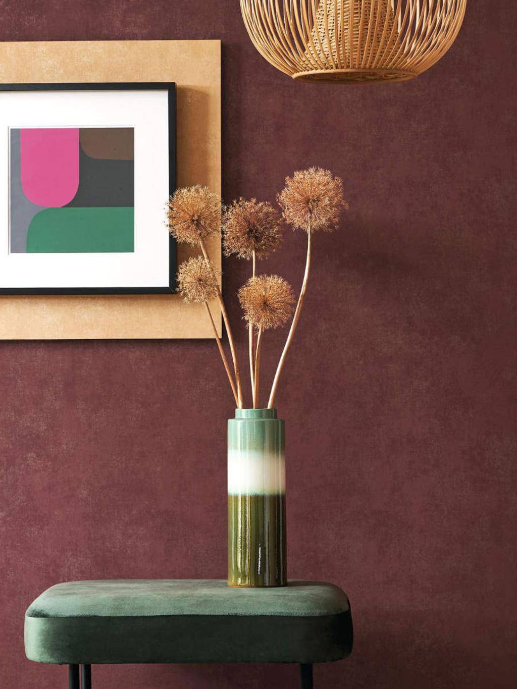 Als reines und edles Mineral prägt Gestein das Thema der Tapeten-Kollektion Stone 2. Schlicht und raffiniert spiegeln die Tapeten eine betagte Wand mit all ihrer Patina, mit Licht und Schatten, mit matten und glänzenden Effekten. Die Oberfläche wirkt zerklüftet, verwaschen, geprägt von den Zeichen der Zeit und durch ihre Vergangenheit noch verschönert. Die Uni-Tapete fügt sich leise in ihre Umgebung ein und schafft den perfekten Hintergrund für Ihre Inneneinrichtung. Ihre dezente Struktur schimmert je nach Lichteinfall. Hier in der Farbe Amarena.