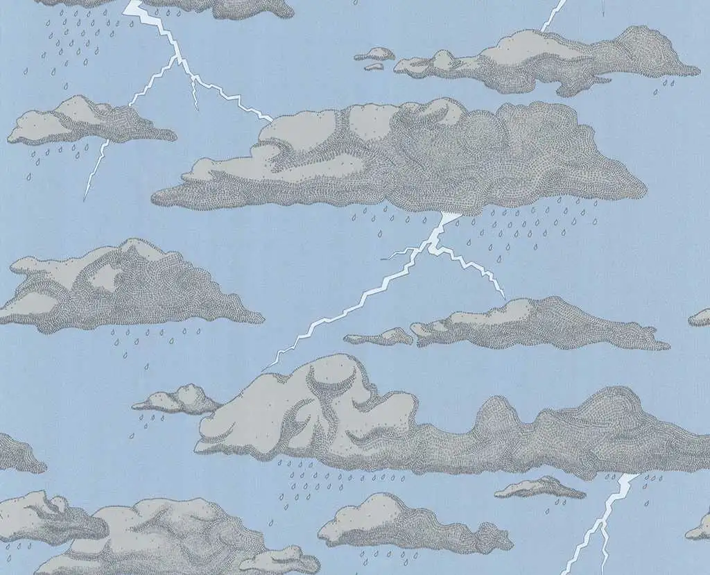 Storm Clouds is a very detailed hand drawn design, inspired by the extreme weather and seemingly endless rain that we have experienced recently in the UK. A touch of drama is added with flashes of bright white lightening