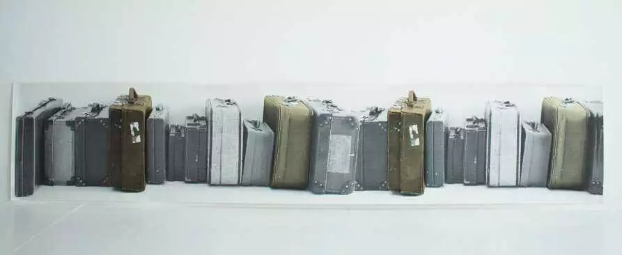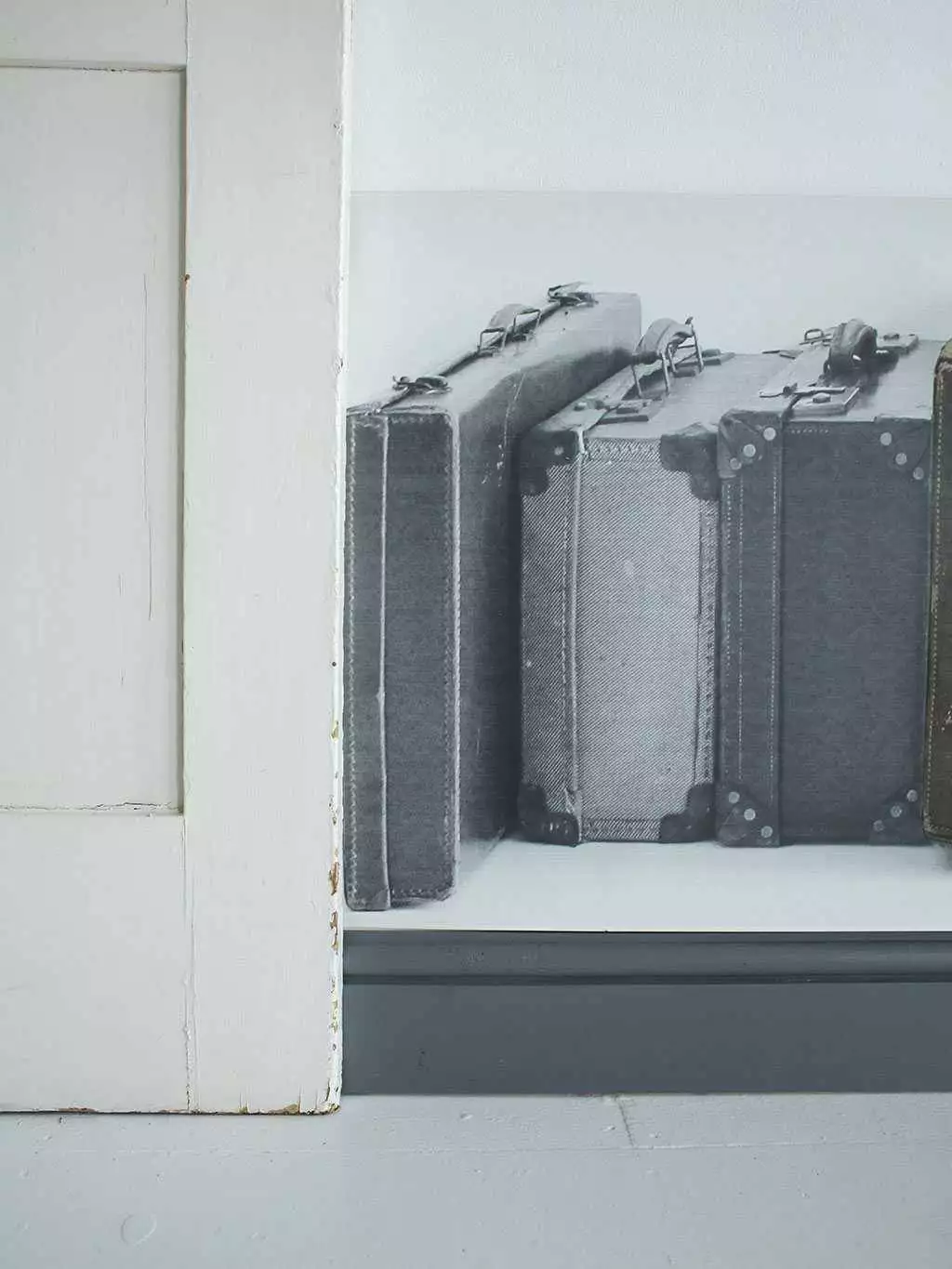 Vintage-Koffer Tapete. Maschinell gefertigt und mit Siebdruck per Hand koloriert. Gedruckt, geschnitten und verpackt von Hand in England.