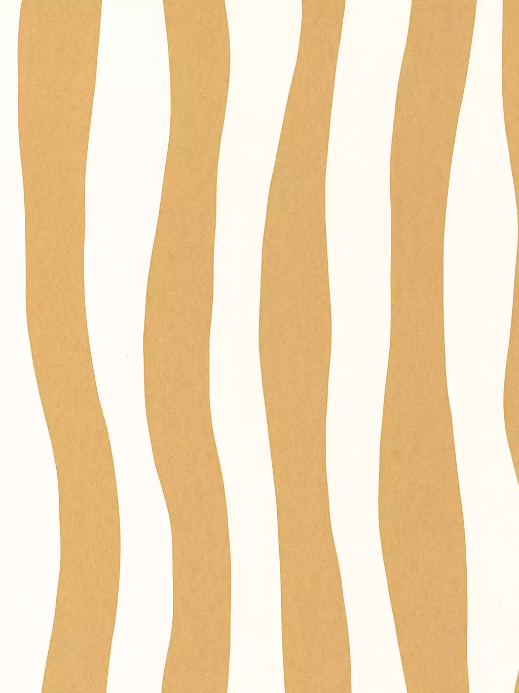 Streifen mal anders. Die Tapete "Sundae" aus der L’Île aux Oiseaux-Kollektion von Casamance in der Farbvariante Miel (Honig) zeigt sanft geschwungene Streifen in warmem Honigton und Creme, die an weich fließende Formen erinneren.