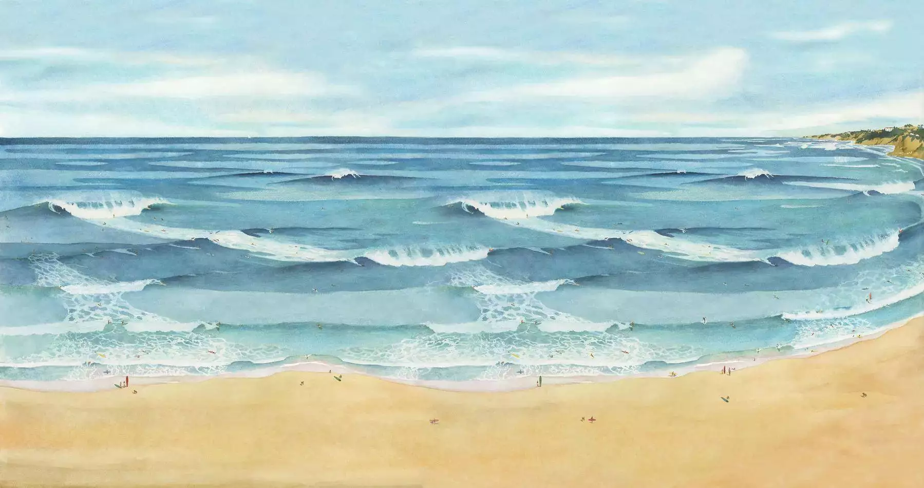 Marion Bartherotte sublimiert die Stimmung des Surfens in einer leidenschaftlichen Panoramakulisse. Dieses Modell gleicht einem riesigen Spielplatz. Sie stellt eine sehr bildliche Stimmung mit einer starken ästhetischen Absicht, Abwandelungen und unendliche Stücken von blau, mit genauso vielen Wellenzüge dar.