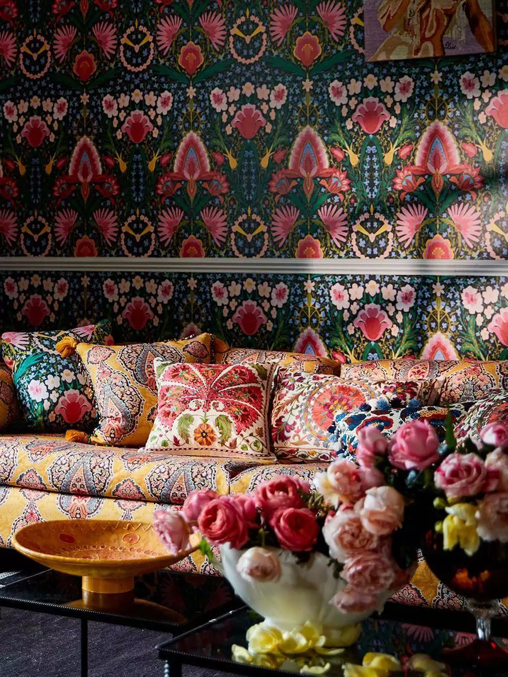 Umgeben von einem faszinierenden Blumenfeld, erleben Sie lebendige Düfte und Farben. Der SUZIE Q-Druck mit bezaubernden, rosa Blumen und einer kreisförmigen Blütenkette zieht alle Blicke auf sich. Die vielfältigen Blumensorten bringen eine Explosion von Farben an die Wände.
