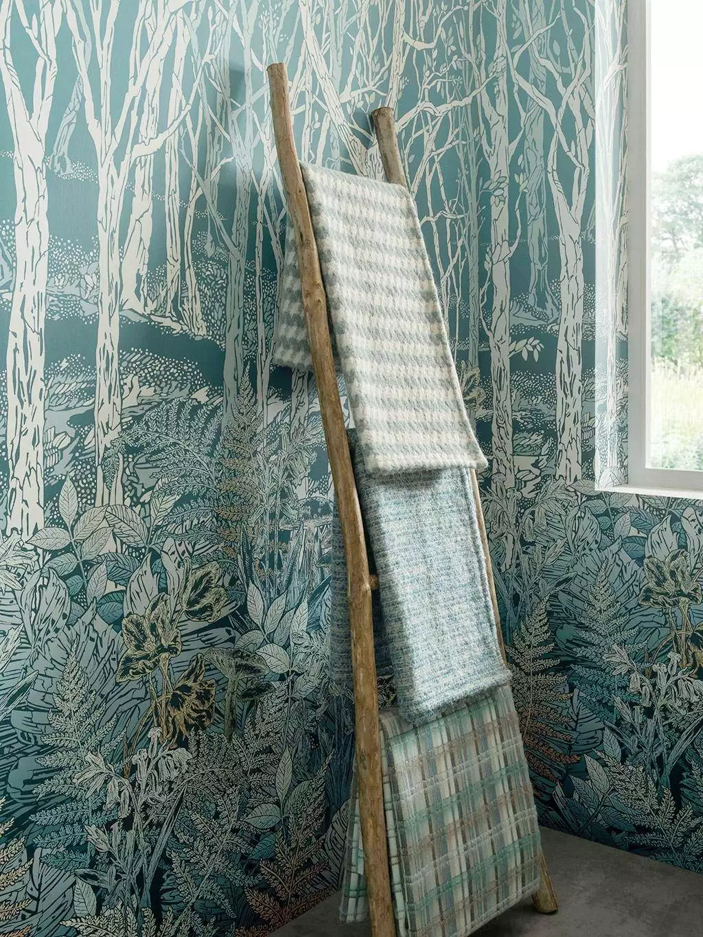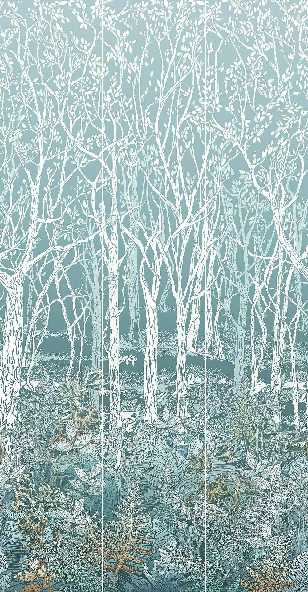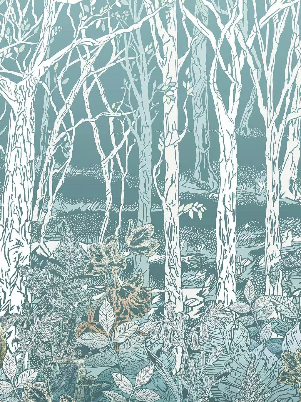 Diese wunderschöne Motivtapete in 3 Bahnen zaubert Ihnen die Idylle eines Waldes ins Haus! Filigran streben zarte Stämmchen nach oben ins Licht. Im dichten Blattwerk am Waldesboden vermutet man zwischen den Farnen und den Stämmen der Bäume kleine Waldbewohner, die neugierig ihre Nasen herausstrecken. Der Wald zwar in seiner Beschaffenheit realistisch auf die Tapete Sylvania gedruckt, wirkt aber dennoch durch die Farbgebung stilisiert. Gestalten Sie eine ganze Wand in ihrem Wohnzimmer mit dieser wunderschönen Tapete, oder holen Sie sich die Waldesruh für sanfte Träume ins Schlafzimmer! Das Motiv ist unendlich erweiterbar.