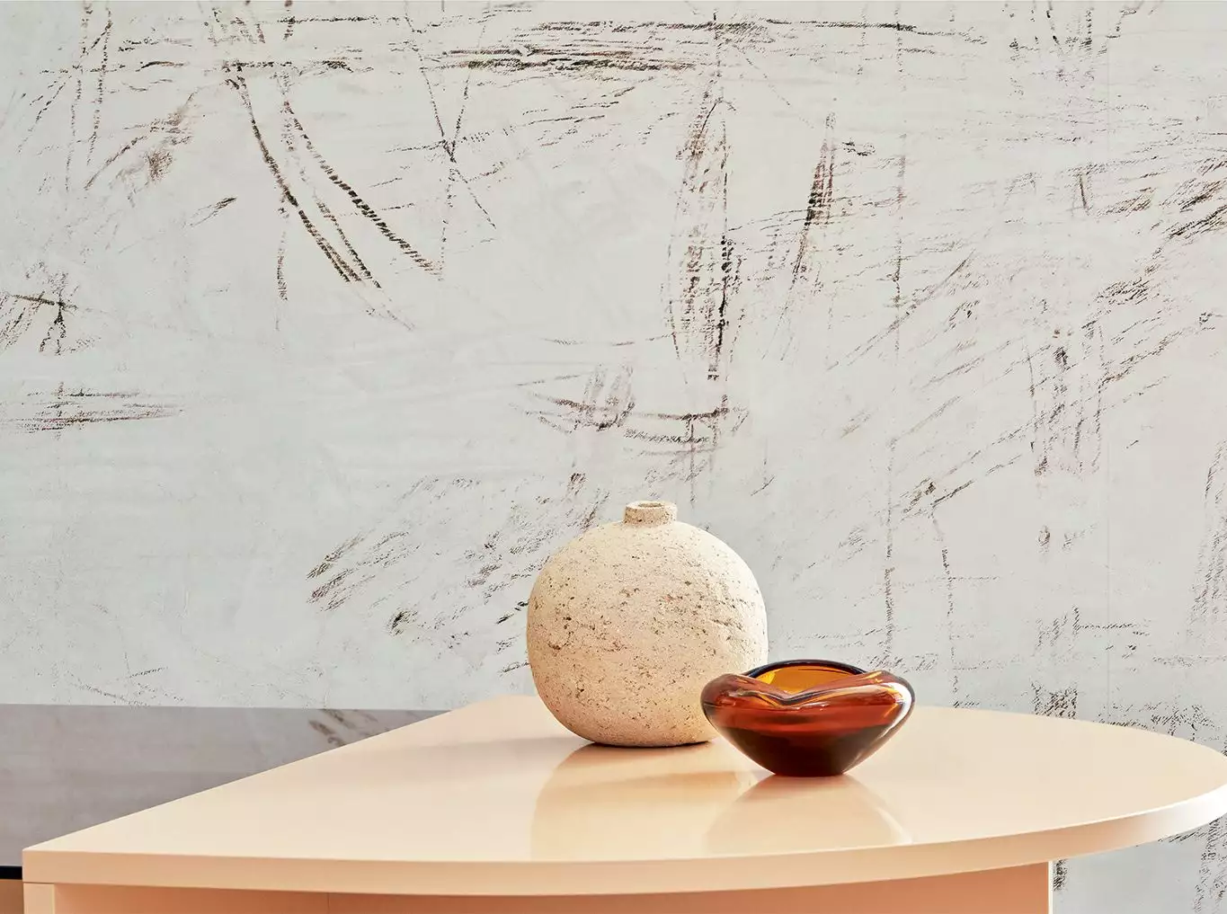 Die Tapete "Tableau rose“ aus der Kollektion "Voiles de papier“ von Elitis ist wie eine Leinwand - offen für Interpretationen und neue Ideen.