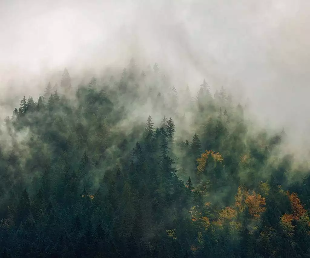 Digitaldrucktapete „Geschichten der Karpaten“. Die Karpatenwälder sind voller Geheimnisse. Eine eindrucksvolle Aufnahme der Natur, die voller Tiefe und Kraft ist.