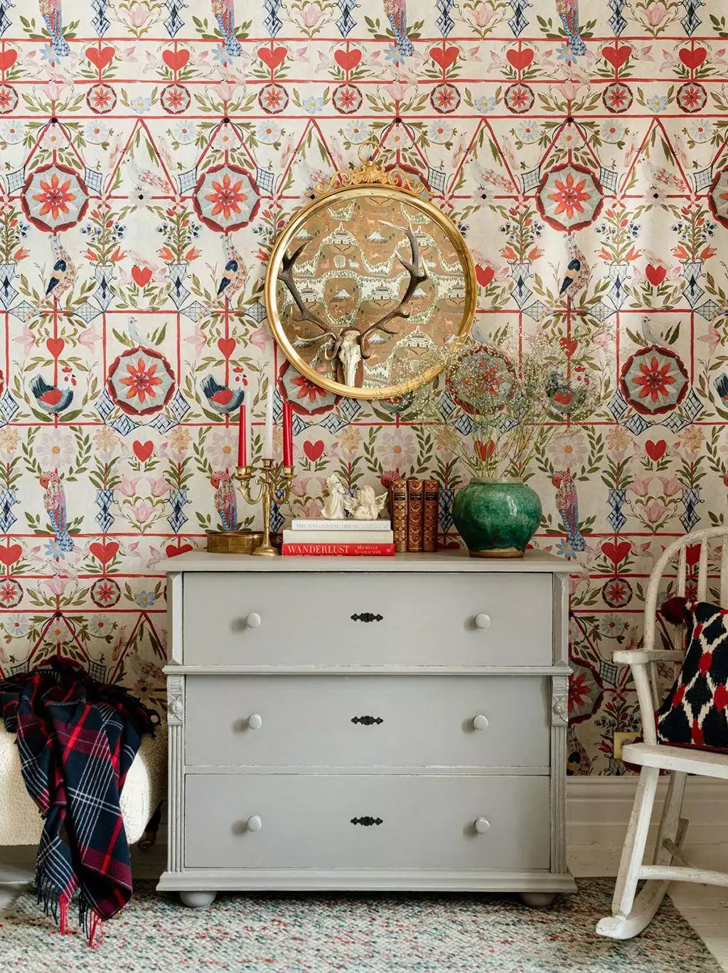 Die Tapete "The Bird House Wallpaper" bringt einen Hauch von poetischer Naturverbundenheit in den Raum. Zarte Vogelhäuschen, kunstvoll auf Zweigen verteilt, schaffen ein lebendiges Bild, das an stille Waldlichtungen und die Melodien zwitschernder Vögel erinnert. Die filigranen Details der Illustrationen wirken wie handgezeichnet und verleihen der Wand eine sanfte Dynamik.