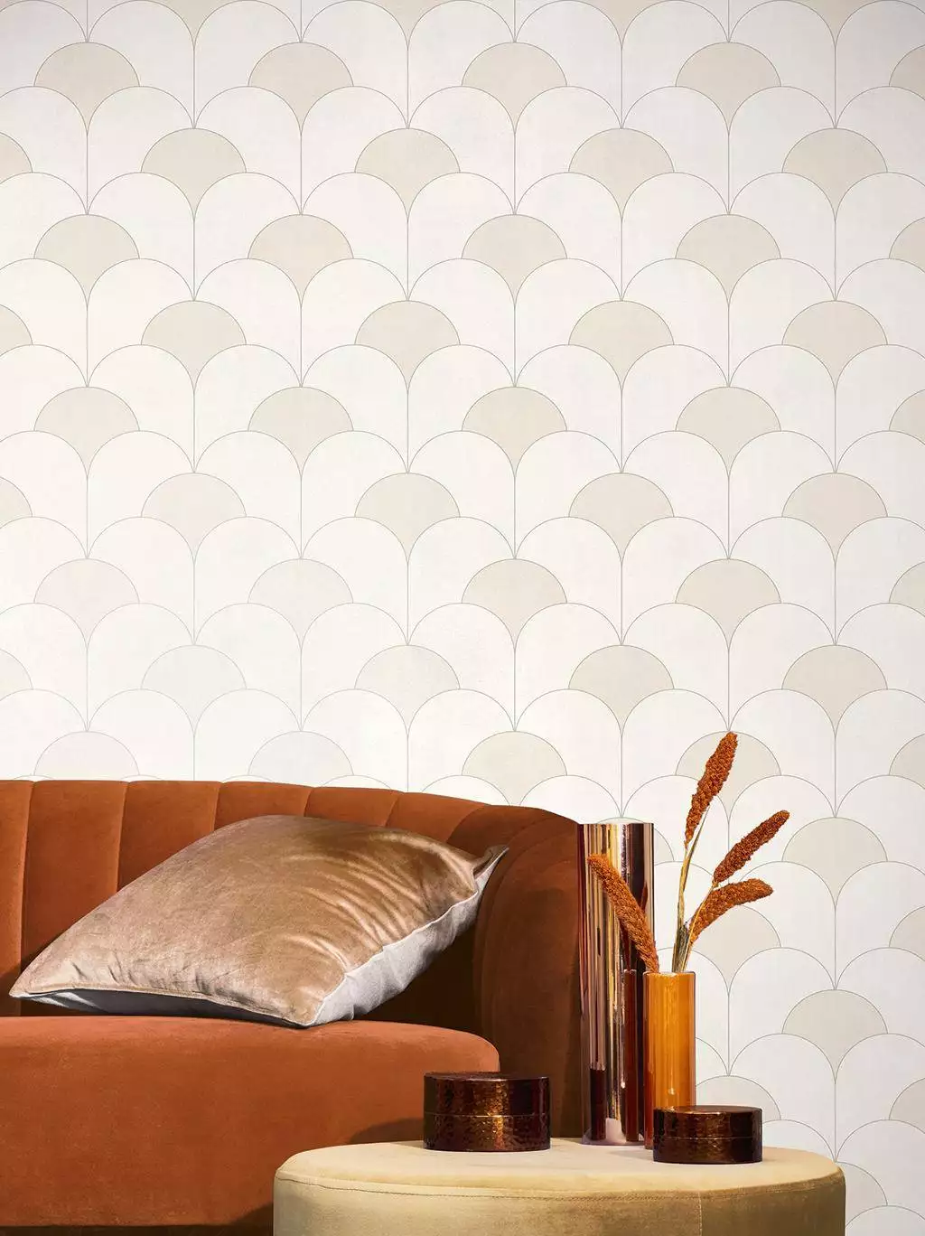 Die Tapete Theatre Beige Lin erinnert an die ruhige Eleganz der zwanziger Jahre. Die sanften Bögen sind von feinen Goldlinien eingefasst und wirken wie ein leises Echo des Art Déco. Inspiriert von der Epoche zwischen Jugendstil und Expressionismus bringt sie in dezenten Tönen rhythmische Weite und warme Ruhe in den Raum. In modernen Interieurs fügt sich Theatre Beige Lin selbstverständlich ein und verleiht ihnen Zeitlosigkeit und Stil.