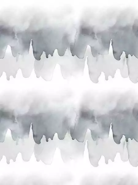 Die Tapete "Tidal, Mist" von Emma Hayes fängt die fließende Bewegung und Sanftheit von Nebelschwaden ein. Mit einem abstrakten Aquarellmuster in zarten Grau- und Blautönen erinnert das Design an die Übergänge von Licht und Schatten in einer nebligen Landschaft.